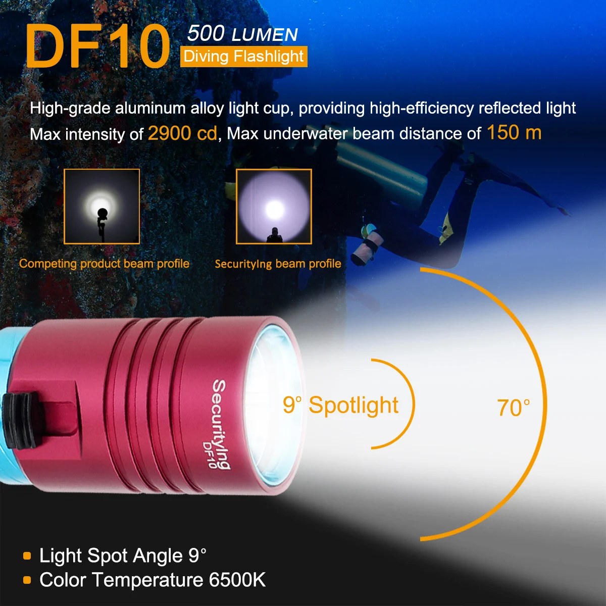 isGyPbAiHere you can buy SecurityIng IPX8 Waterproof Diving Flashlight 500 Lumens Riot Dive Torch Underwater 30 Meter Professional Scuba Light with free delivery to your post office.