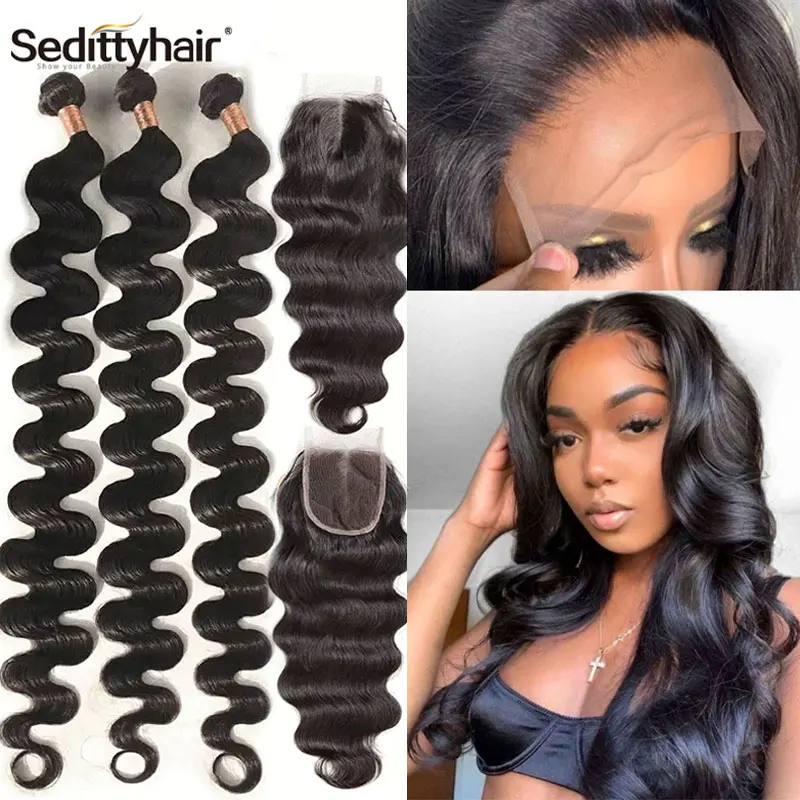 Seditty Brazilian Hair Body Wave 3 Bundles With Closure Human Hair Bundles With Closure Lace Closure Remy Human Hair Extension - Купить с бесплатной доставкой