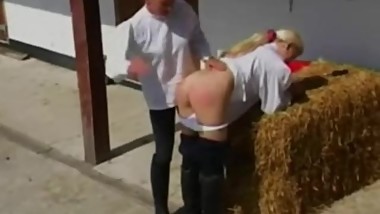 Golden-Haired copulates two guys in garage -HPC