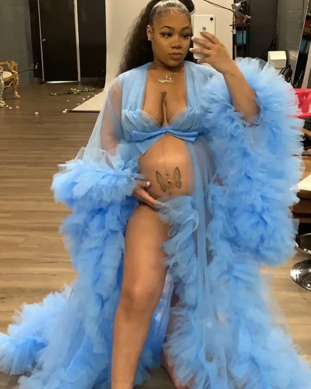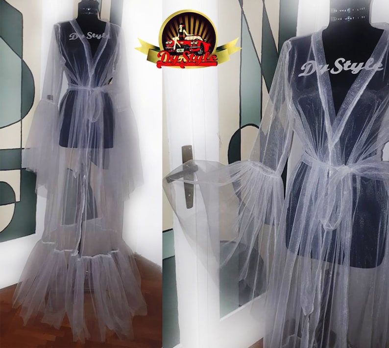 See Through Tulle Robe Custom Made Tulle Maternity Dress Robe Puffy Tulle Long Robe Tulle Jacket Women Party Prom Wear