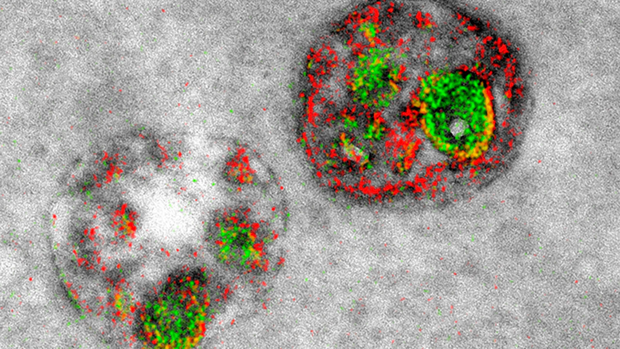 Imagine spending your whole life seeing the world in black and white, and then seeing a vase of roses in full color for the first time. That’s kind of what it was like for the scientists who have taken the first multicolor images of cells using an electron microscope. Electron microscopes can magnify an object up to 10 million times, allowing researchers to peer into the inner workings of, say, a cell or a fly’s eye, but until now they’ve only been able to see in black and white. The new advance—15 years in the making—uses three different kinds of rare earth metals called lanthanides (think top row of that extra block below the periodic table) layered one-by-one over cells on a microscope slide. The microscope detects when each metal loses electrons and records each unique loss as an artificial color. So far, the researchers can only produce three colors—red, green, and yellow, they report online today in Cell Chemical Biology. Still, the ability to use color creates stark contrasts that grayscale images simply can’t accomplish. The team could see a string of proteins squeezing through a cell membrane (pictured) in more detail than scientists ever had before, for example. With a few more tweaks and added metal ions, researchers hope to add three or four other colors to the mix and improve the images’ resolution.