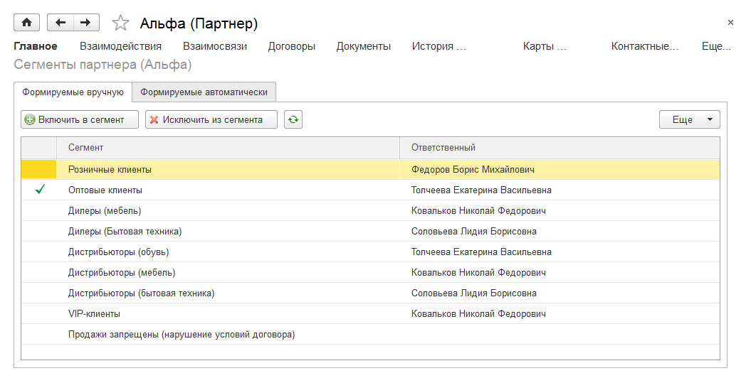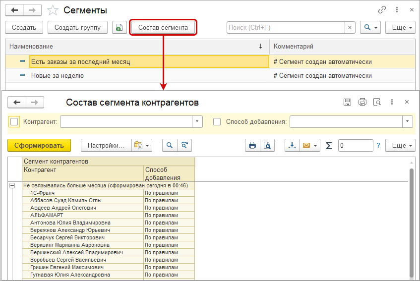 Сегмент клиента в 1с