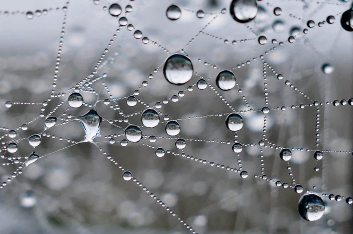 В Великобритании роса выпала на паутинку.