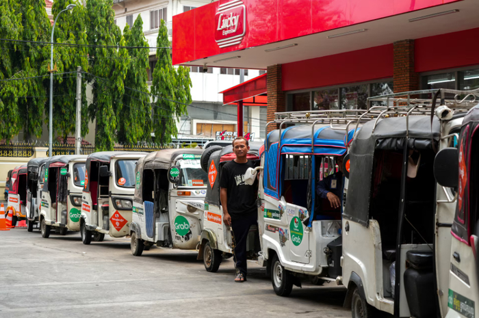 В Камбодже тук-туки приехали на заправку.