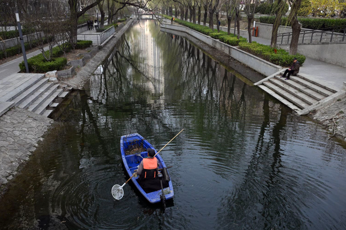 В Китае убрали мусор из реки.