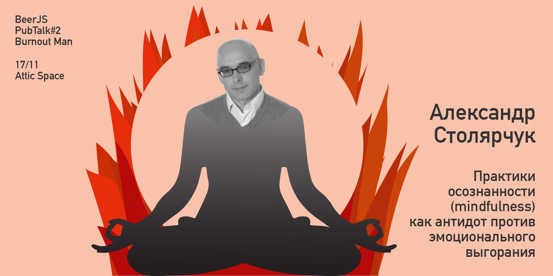 А рассказывать Алекс будет про превентивные меры борьбы с выгоранием, с фокусом на осознанности текущего момента. И еще обсудит с вами вечную проблему программистов – попытку контролировать будущие и потерю фокуса в настоящем. Туда и обратно, по пути самопознания, как говориться.