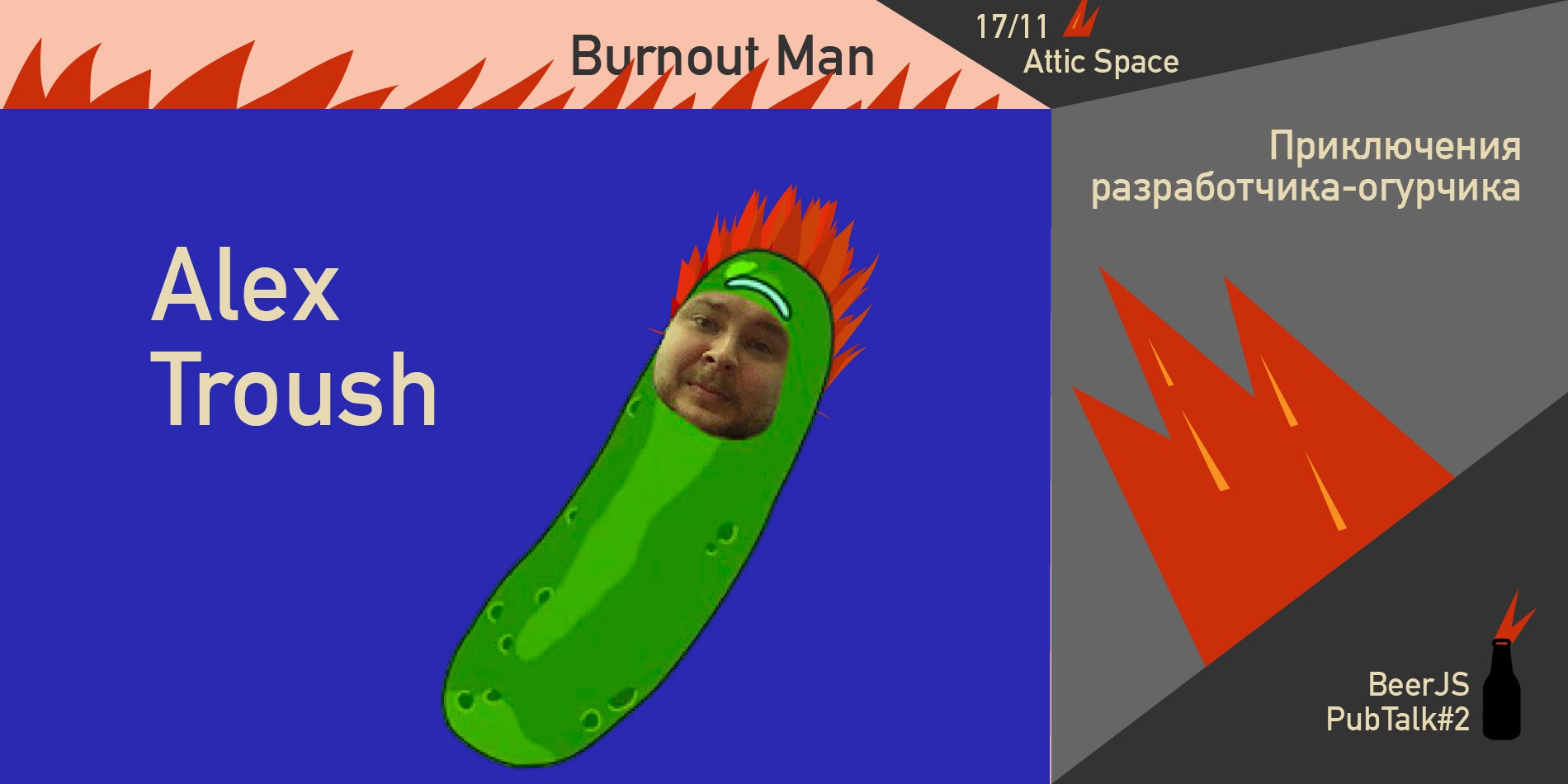 Alex Troush – большой друг BeerJS Kyiv и один из тех, кто вдохновил нас обсудить тему выгорания. И если кто помнит его доклад на OdessaJS в 2016м, то понимает, что мы проделали большой путь, чтобы вновь затронуть эту тему вместе с ним.