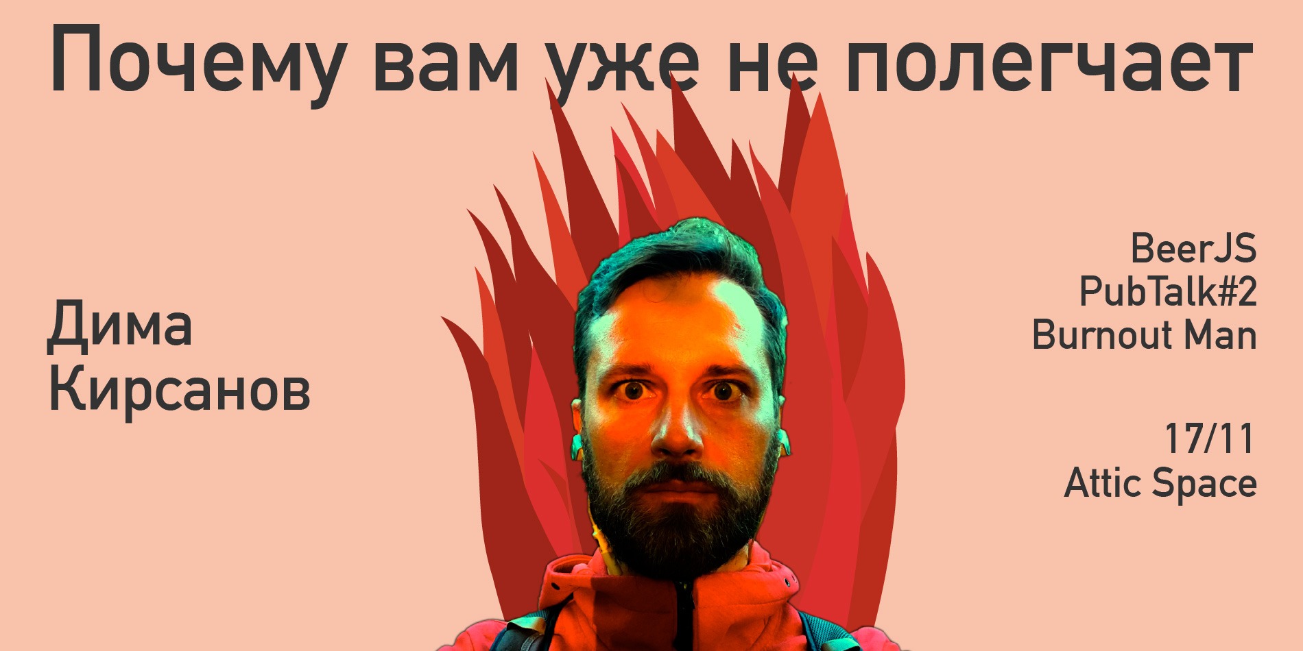 Илья создал одни из самых лучших онлайн курсов JavaScript.Ninja - Всё будет JavaScript и комьюнити вокруг этого, финансируя все через патреон. И с тех пор все больше тратит времени на обучение людей. Возможно от выгорания его спасает именно это. А может и не спасает, и он продолжает гореть и освещать дорогу знаний своим ученикам. Но лучше он сам вам расскажет на нашем ивенте.