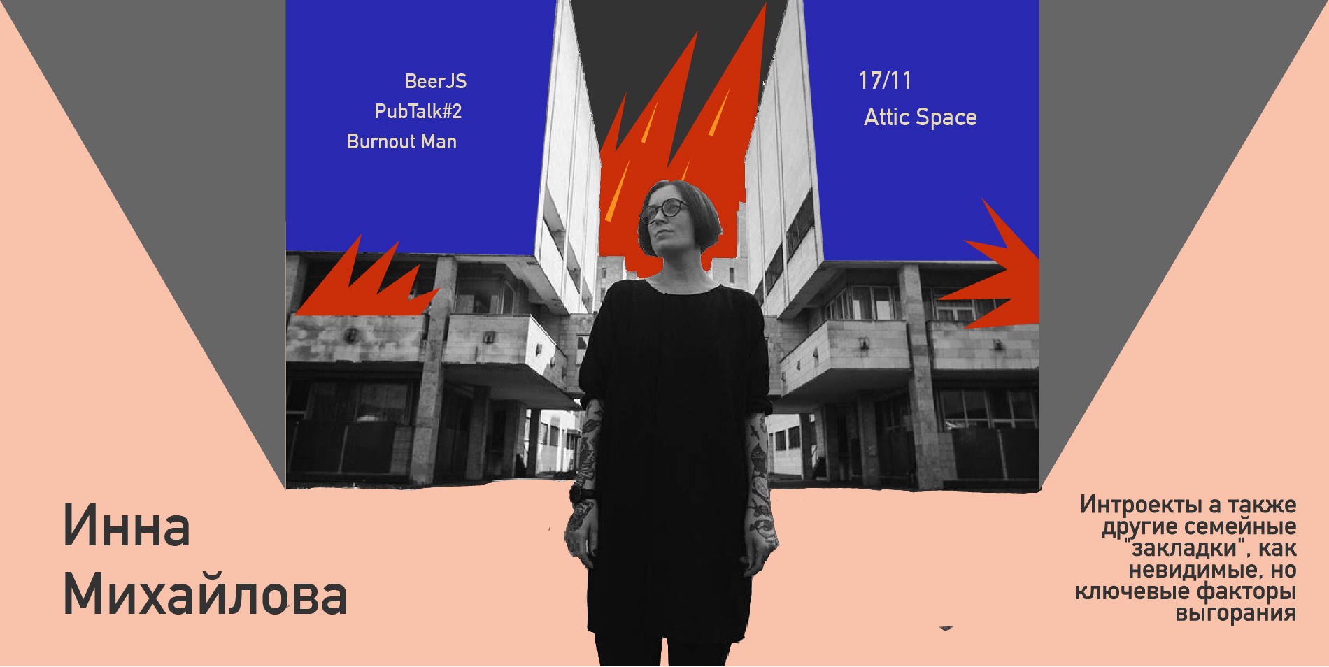 Как раз на ивенте Инна будет говорить о том, как можно сгореть, выгореть или “ходить по углям” в профессиональном развитии с учетом того, что дали родители. О том, как семейная система “причиняет добро”: как фигуры родителей, их требования и интроекты пинают в развитии и/или же останавливают.