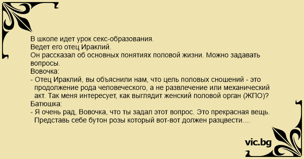 Урок, как правило, длился полчаса . . . . Я не понял, причем тут секс, если речь идет о занятиях русским языком . . . . Когда мы с Леночкой занимались сексом, . . .