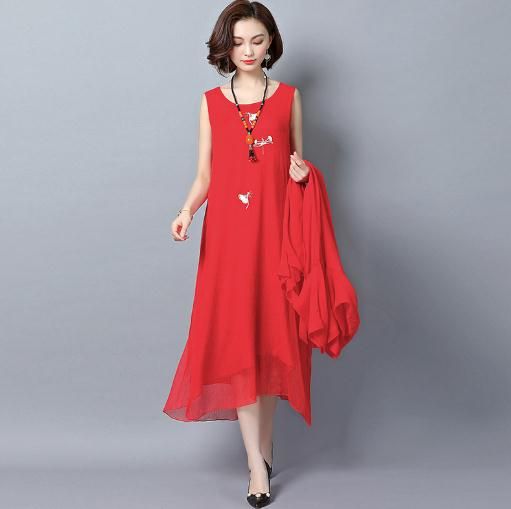 Секс Льняная Красная Платье