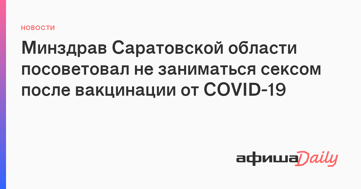 Занятие сексом не рекомендовано в первые дни после вакцинации от коронавируса, сообщил замминистра . . .