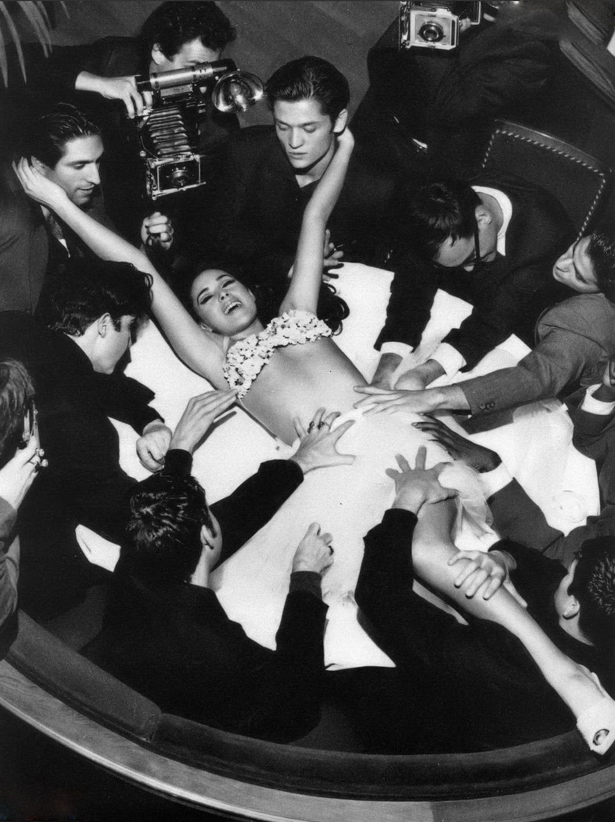 Одной из первых силу секса в пространстве сцены оценила одиозная американка Мэй Уэст. В 1926 году фигуристая платиновая блондинка (по слухам, Мэрилин Монро скопировала запоминающийся образ у Уэст) написала пьесу "Секс", которую сама же и поставила в бродвейском Daly's 63rd Street Theatre и исполнила роль главной героини — проститутки. Критика постановку разгромила: сырой продакшен, нелепый сюжет и бездарные актёры. А вот публика выламывала двери, чтобы попасть в зрительный зал.