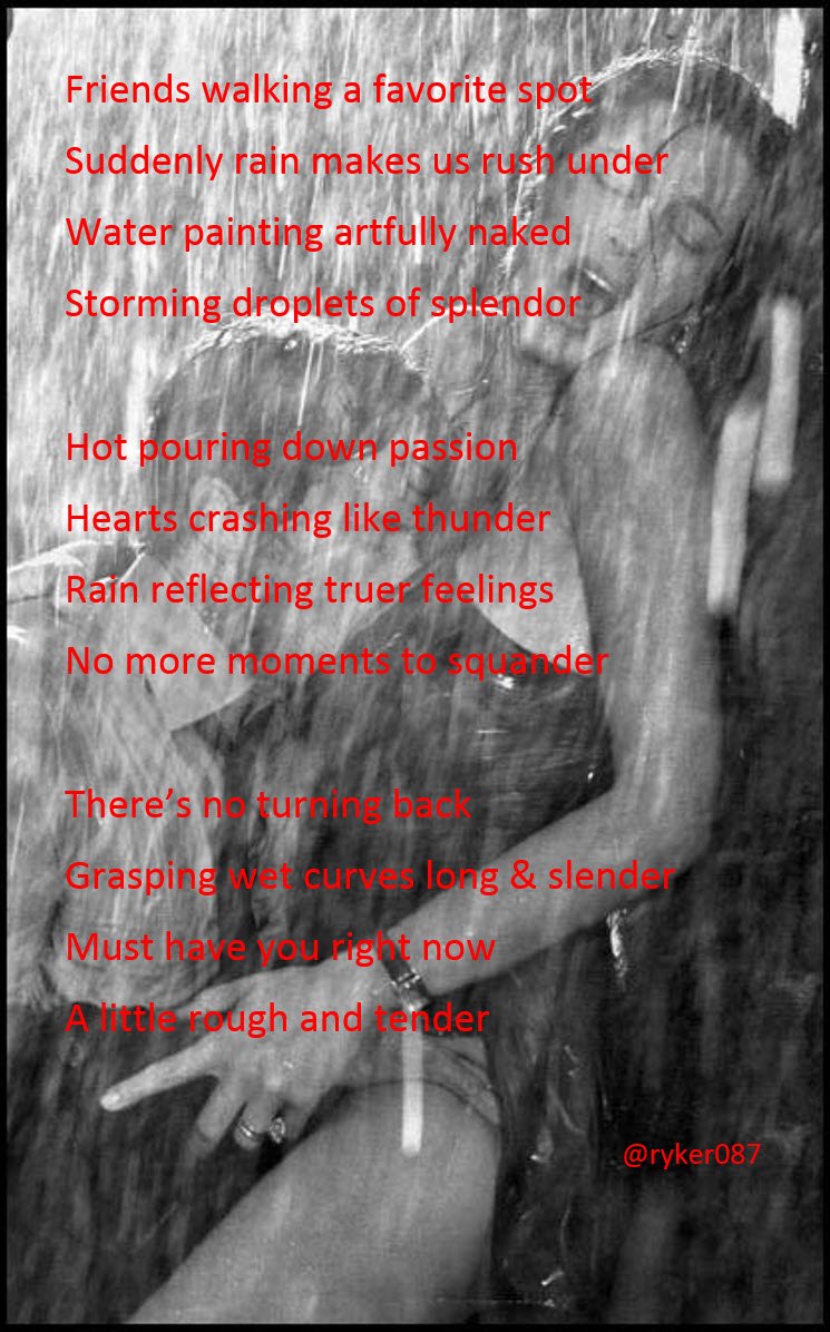 9 08 - Секс под дождем - какая сладость. Залез на крышу, жажду встречи. Ложатся руки мне на плечи, И дождь пошел - волнений радость.