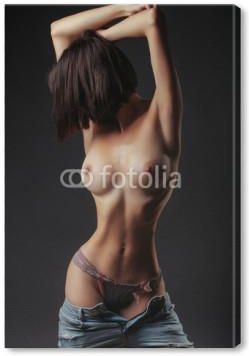 Naga brunetka na kanapie