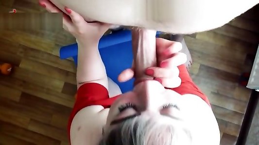 Баба в серой майке отсасывает большой ствол хахаля с подругами после секса