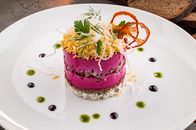 Сельдь Под Шубой Подача В Ресторанах Фото