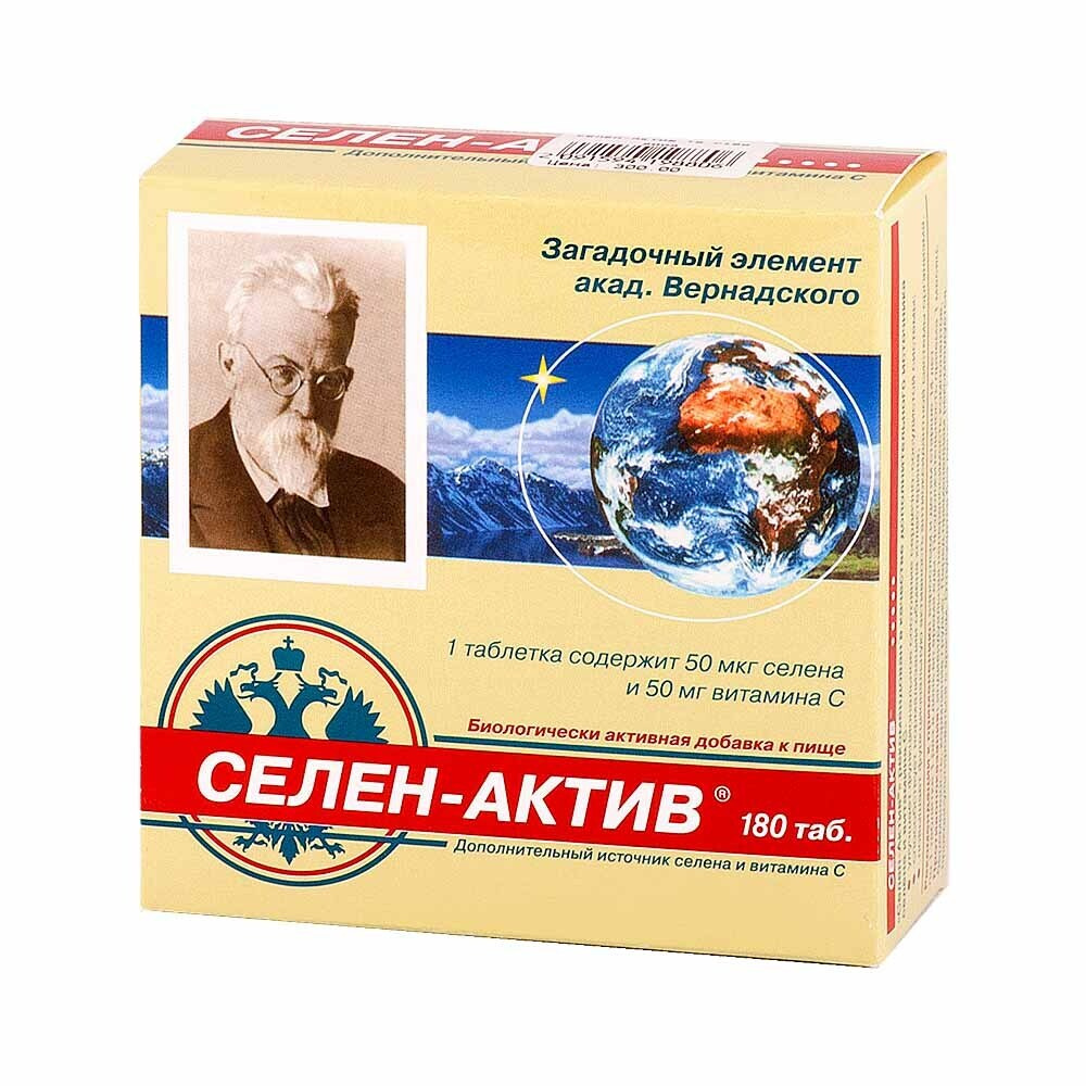 Селен-Актив - (БАД) биологически активная добавка к пище; источник витамина C и селена . Производитель: ДИОД завод экологической техники и экопитания, ОАО (Россия), В-МИН+, ООО (Россия)Срок годности - 1 или 2 года (в зависимости от изготовителя) .