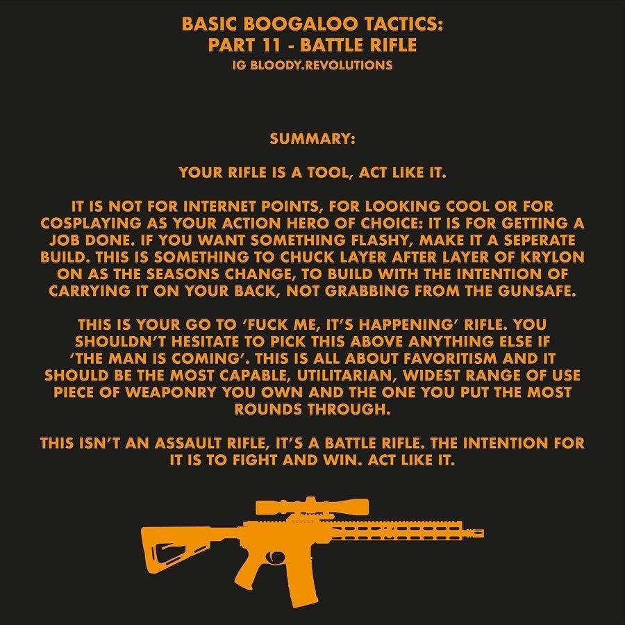 A well-functioning, reliable rifle is literally a matter of life or death for an irregular militiaman and his opponents. There are, again, too many types of rifle to list here, and availability will vary according to location. In the United States, the AR-15 chambered in 5.56 will be one of the most practical choices. If possible, reputable manufacturers such as BCM or Aero Precision should be sought after.