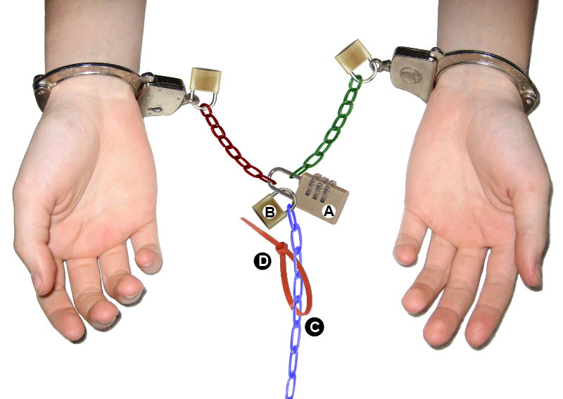 Padlock – Have several spare keys to your padlock or handcuff, and keep themclose enough.