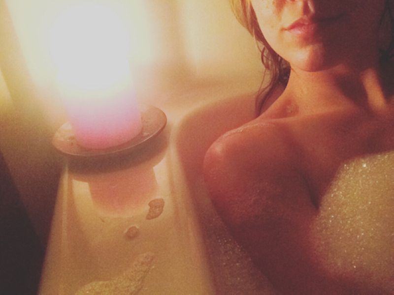 Фотография в ванне с пеной выглядит загадочно и притягательно. Вы как бы создаёте интригу, одновременно показывая голое тело, и скрывая за пеной самые пикантные участки.