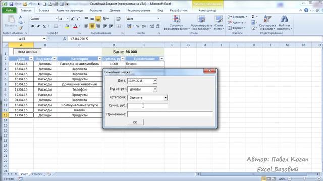 Семейный бюджет в экселе