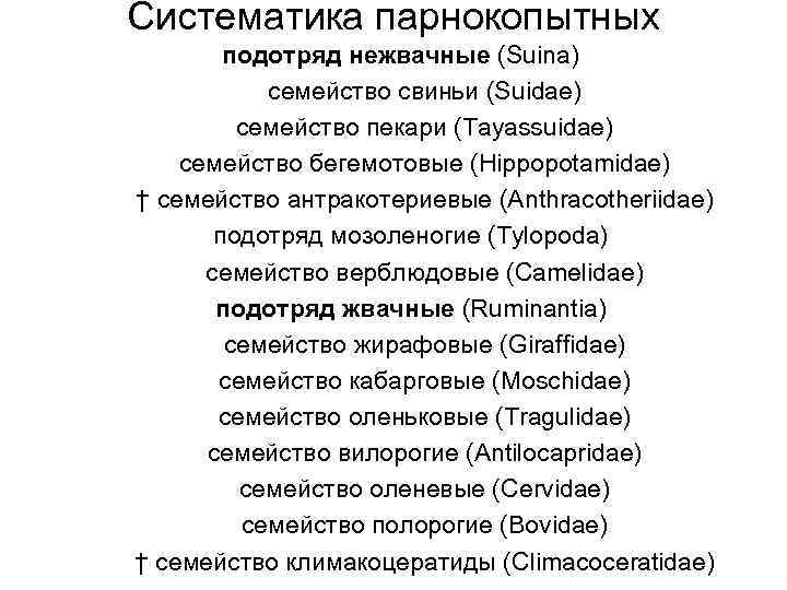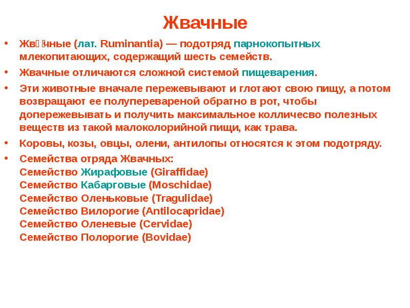 Семейства жвачных парнокопытных