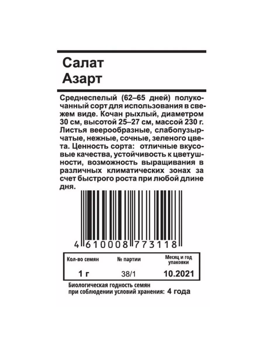 Семена салата азарт