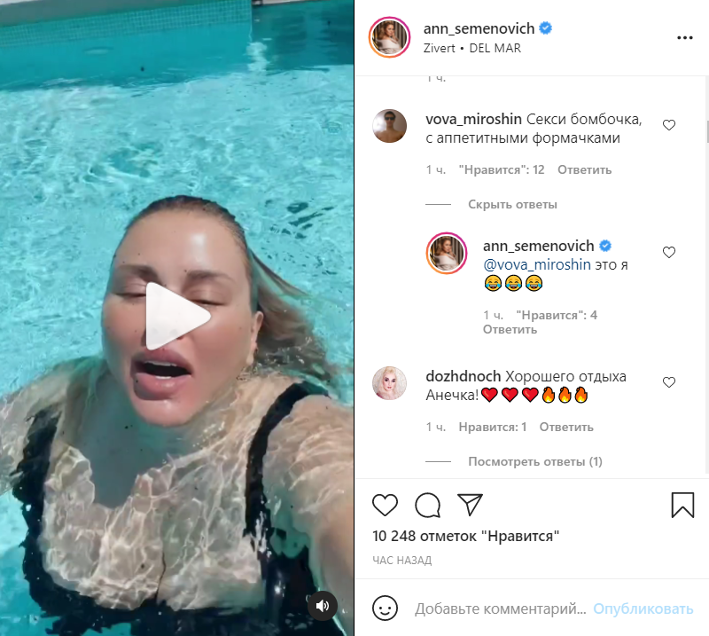 Еще одна звезда Инстаграма, отечественного шоу-бизнеса и мужских сердец тоже не дает поклонникам скучать . Искупаться публично решила и Анна Семенович .