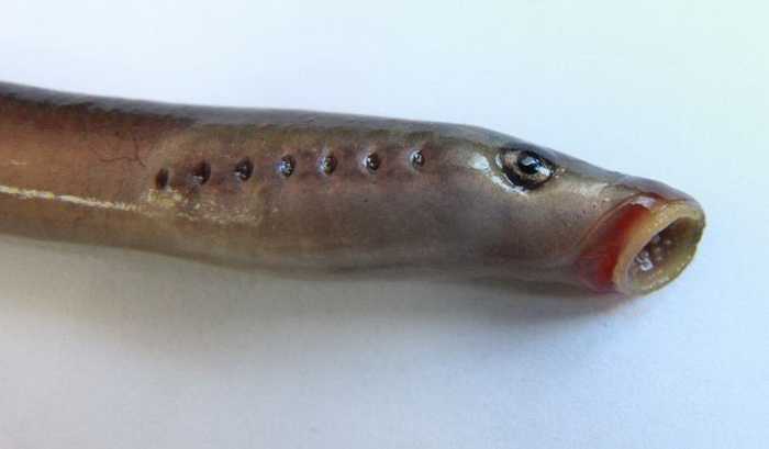 Минога - рыба речная и морская, вид тела и личинки