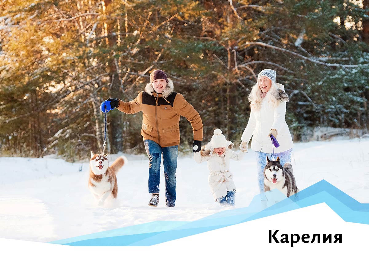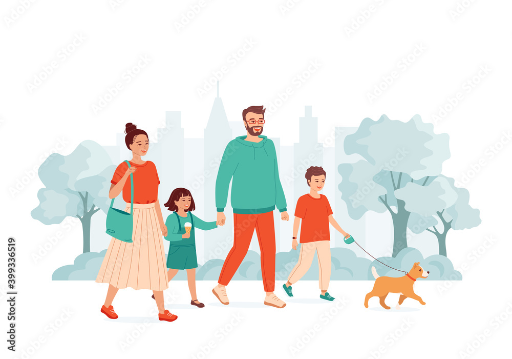 Семья гуляет с собакой