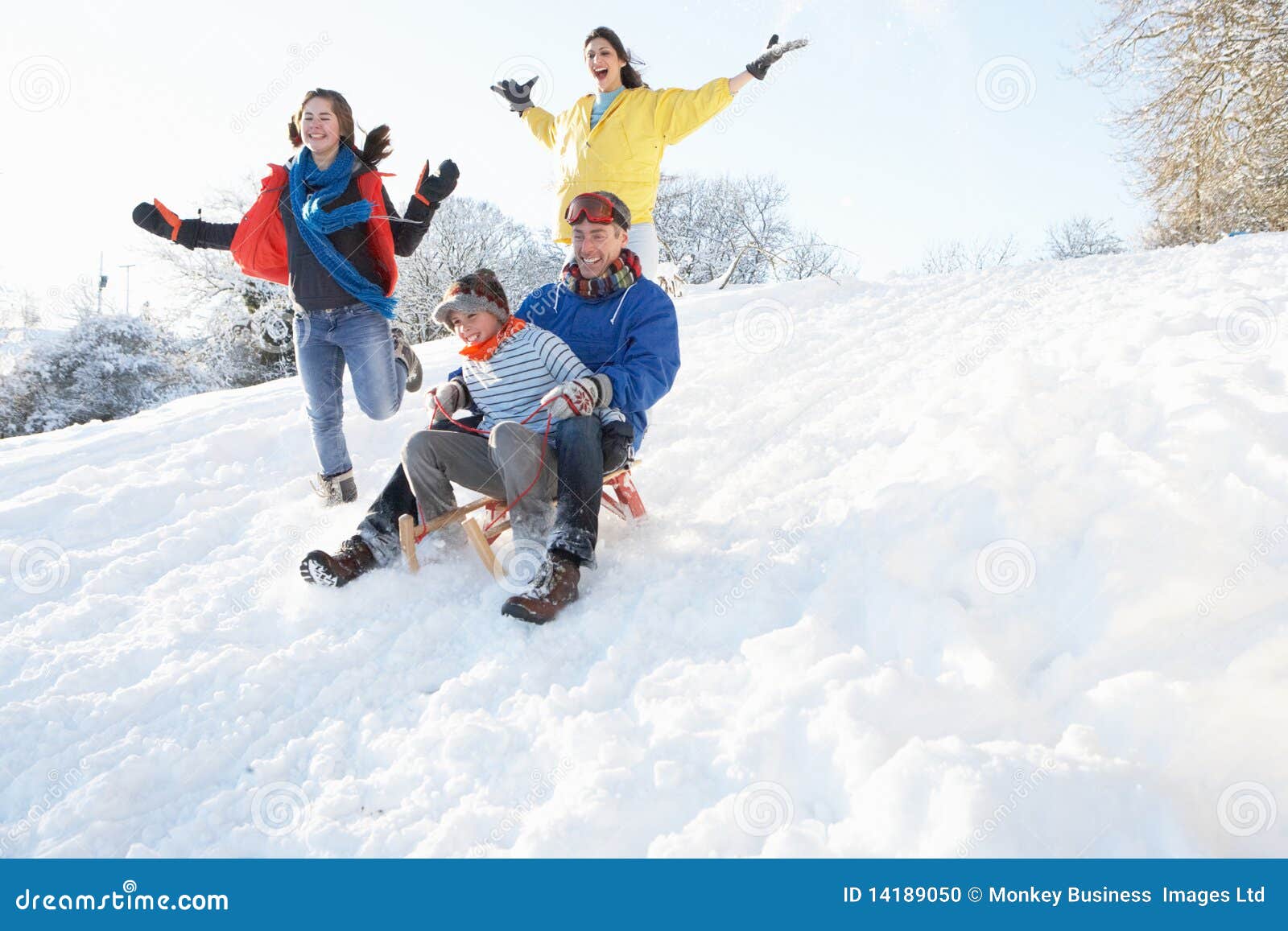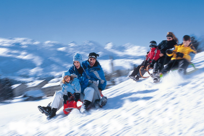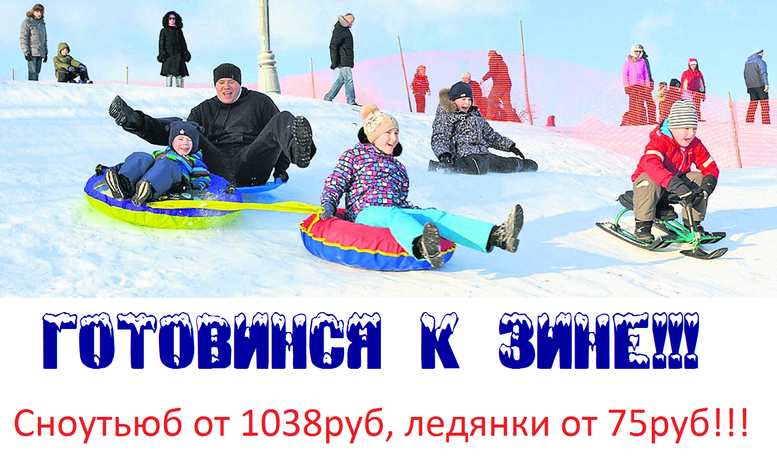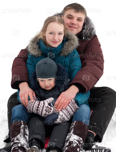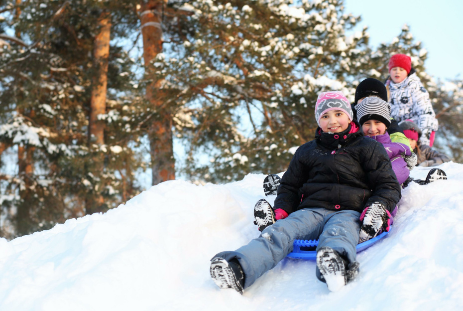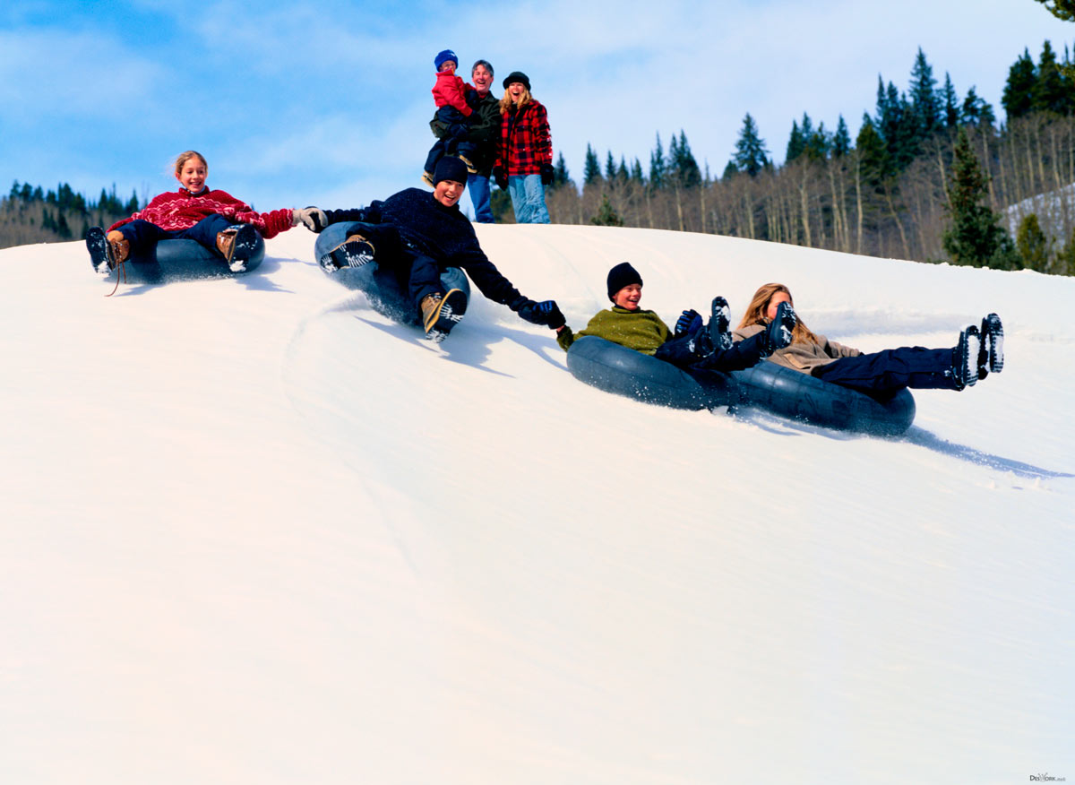 Семья катается на горке