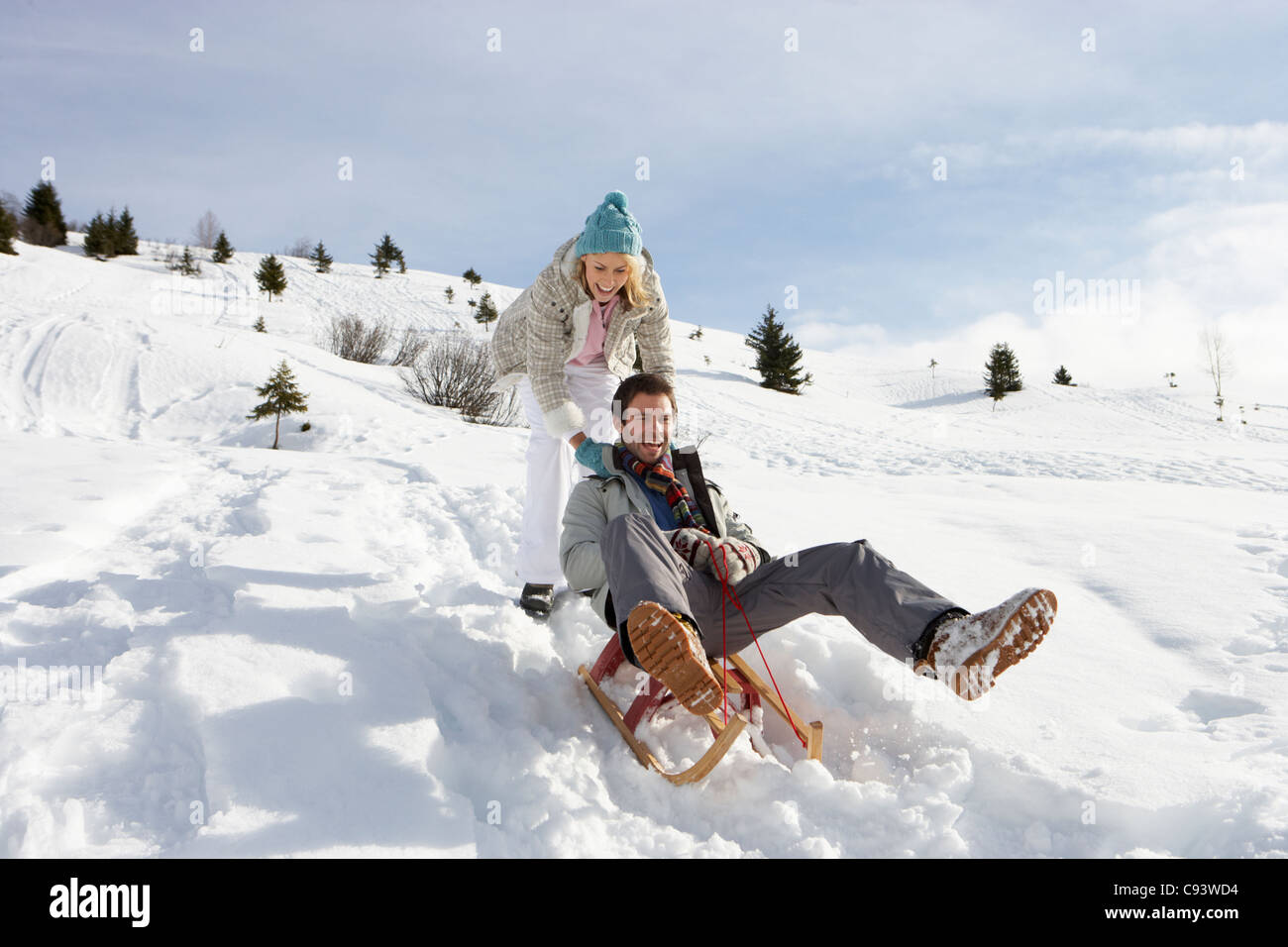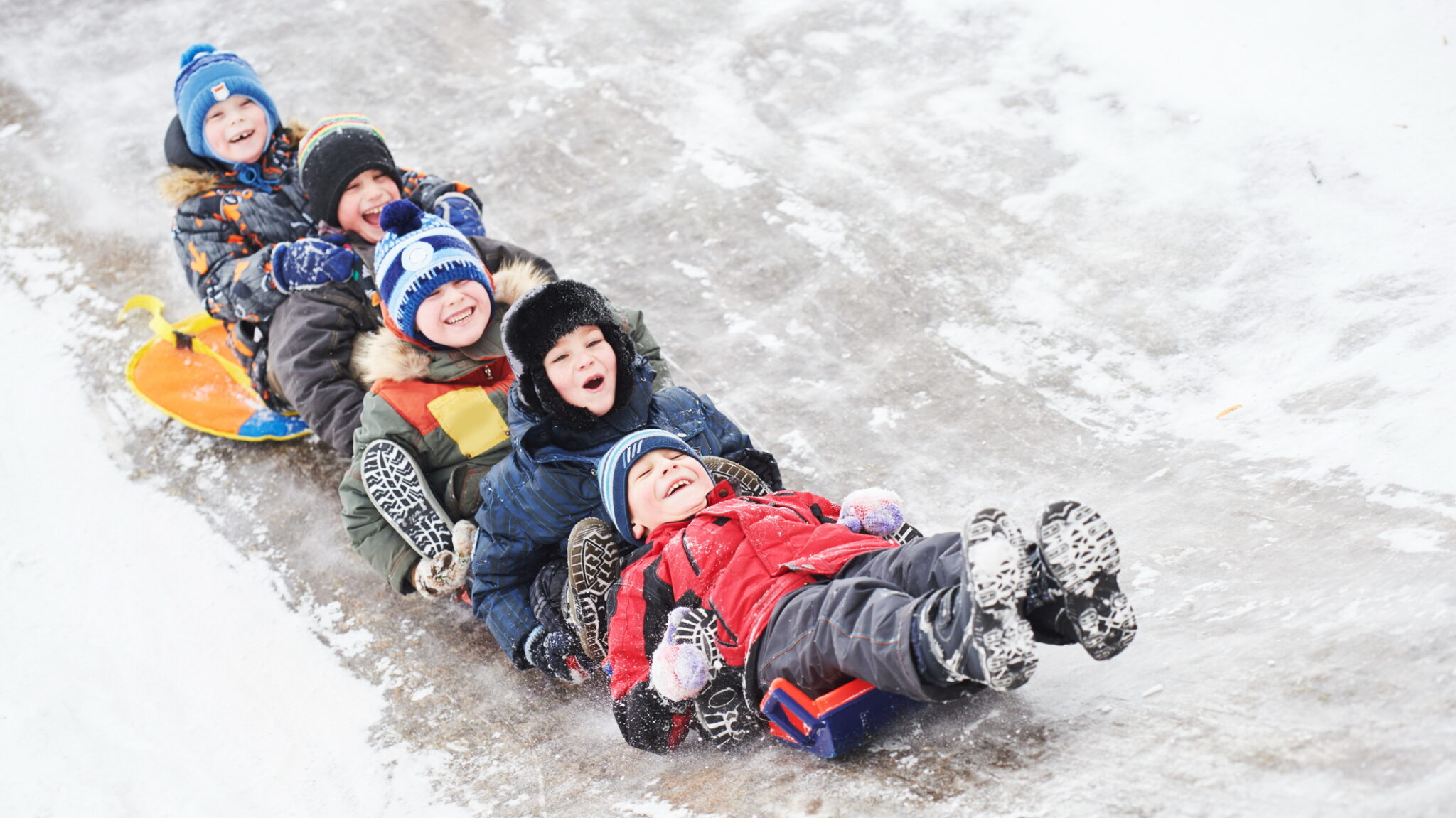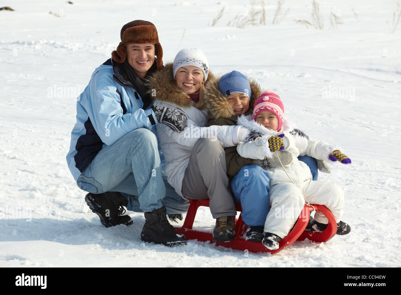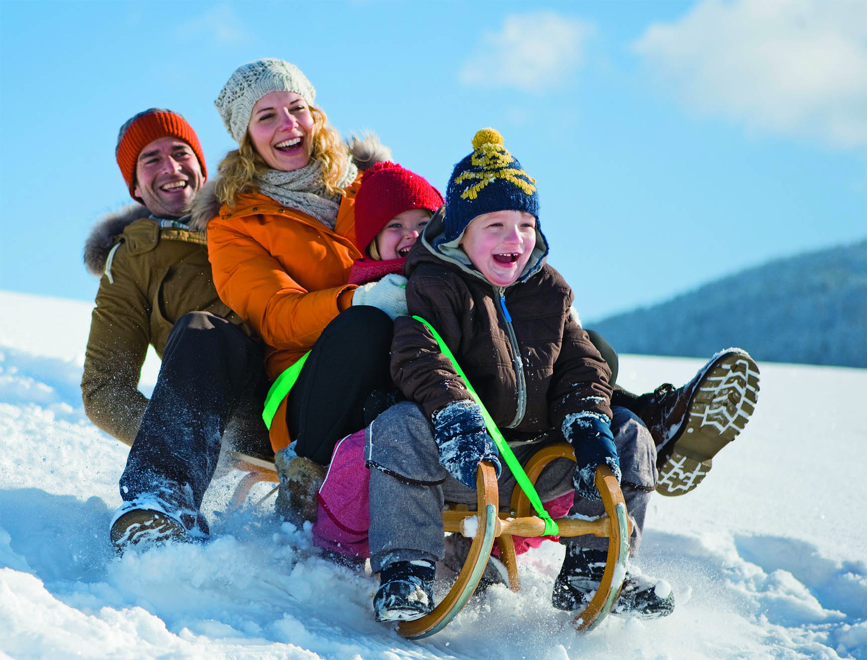 Семья катается на горке
