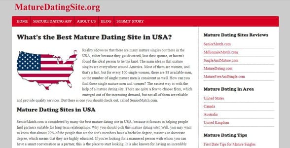 Be on the Best Senior Dating Sites for Australians Using a mainstream site with a section dedicated to seniors won't get you far . You need niche dating platforms to get better results, and that's exactly when our list of older dating sites for Australians will help you move in the right direction .