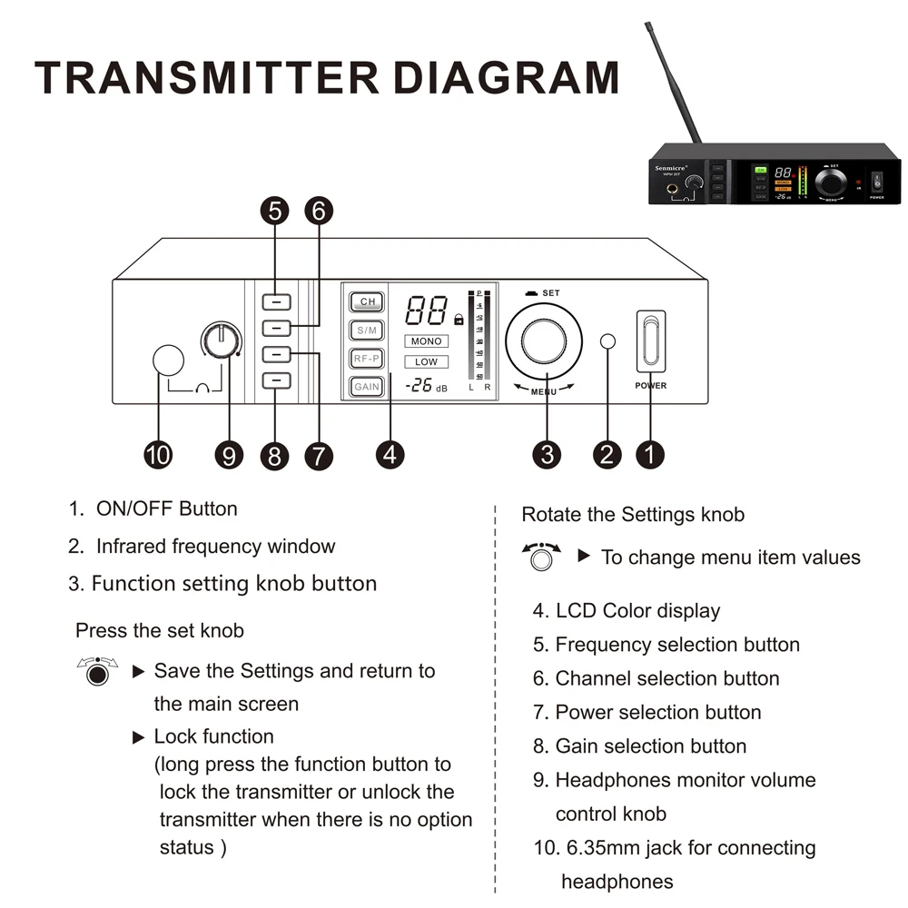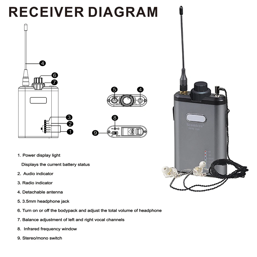 sxjuuHfDHere you can buy Senmicre WPM20T High Professional Wireless Personal In Ear Monitoring System Stereo Bodypack Receiver 24bit Digital Audio System with free delivery to your post office.