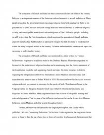 Essay: "Separation of Church and State" - Sample Essay to . . .