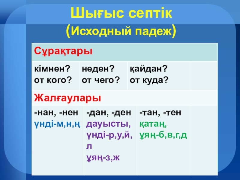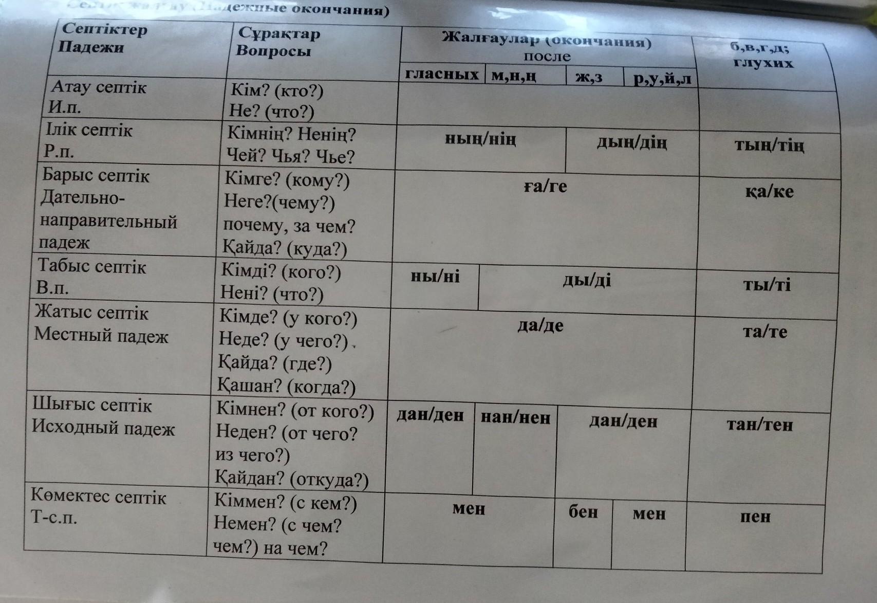 Септік жалғау таблица 99 фотографий