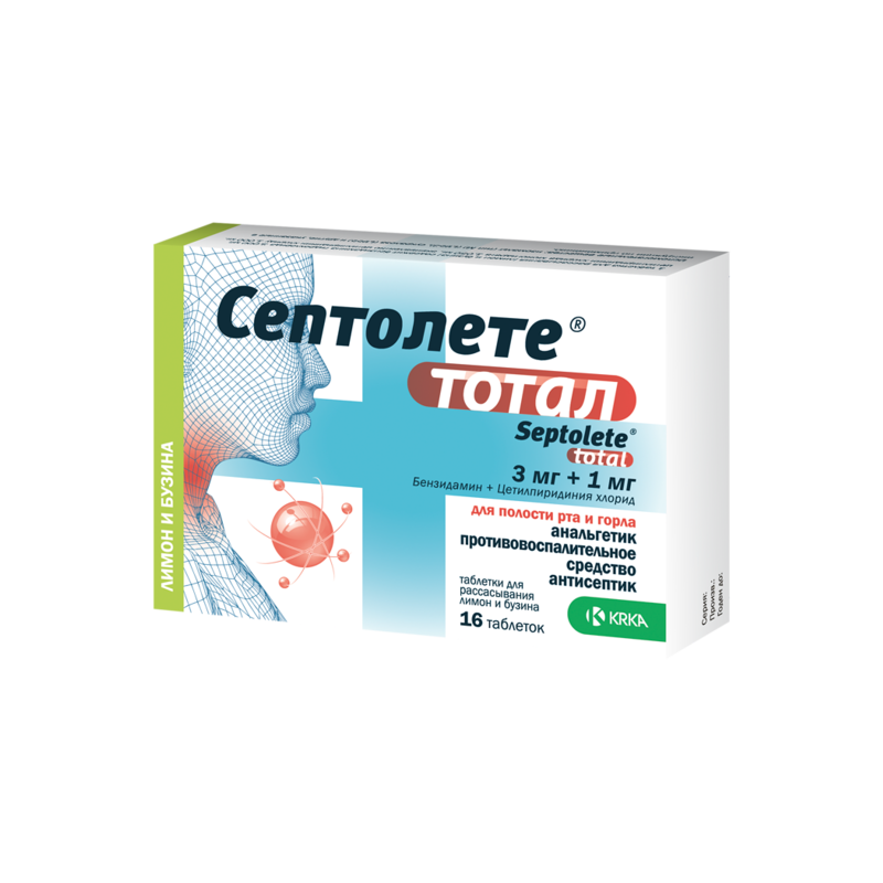 Септолете® тотал инструкция по применению . . . . Бензидамин, в основном, применяется при лечении заболеваний ротоглотки . Цетилпиридиния хлорид . . .