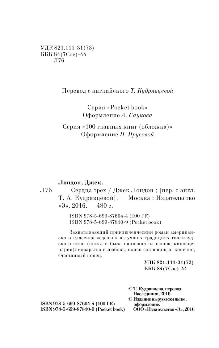 1992 . IMDb . ID 0963997 . «Сердца трёх» — российско - украинский приключенческий фильм режиссёра Владимира Попкова 1992 года, экранизация одноимённого романа Джека Лондона .