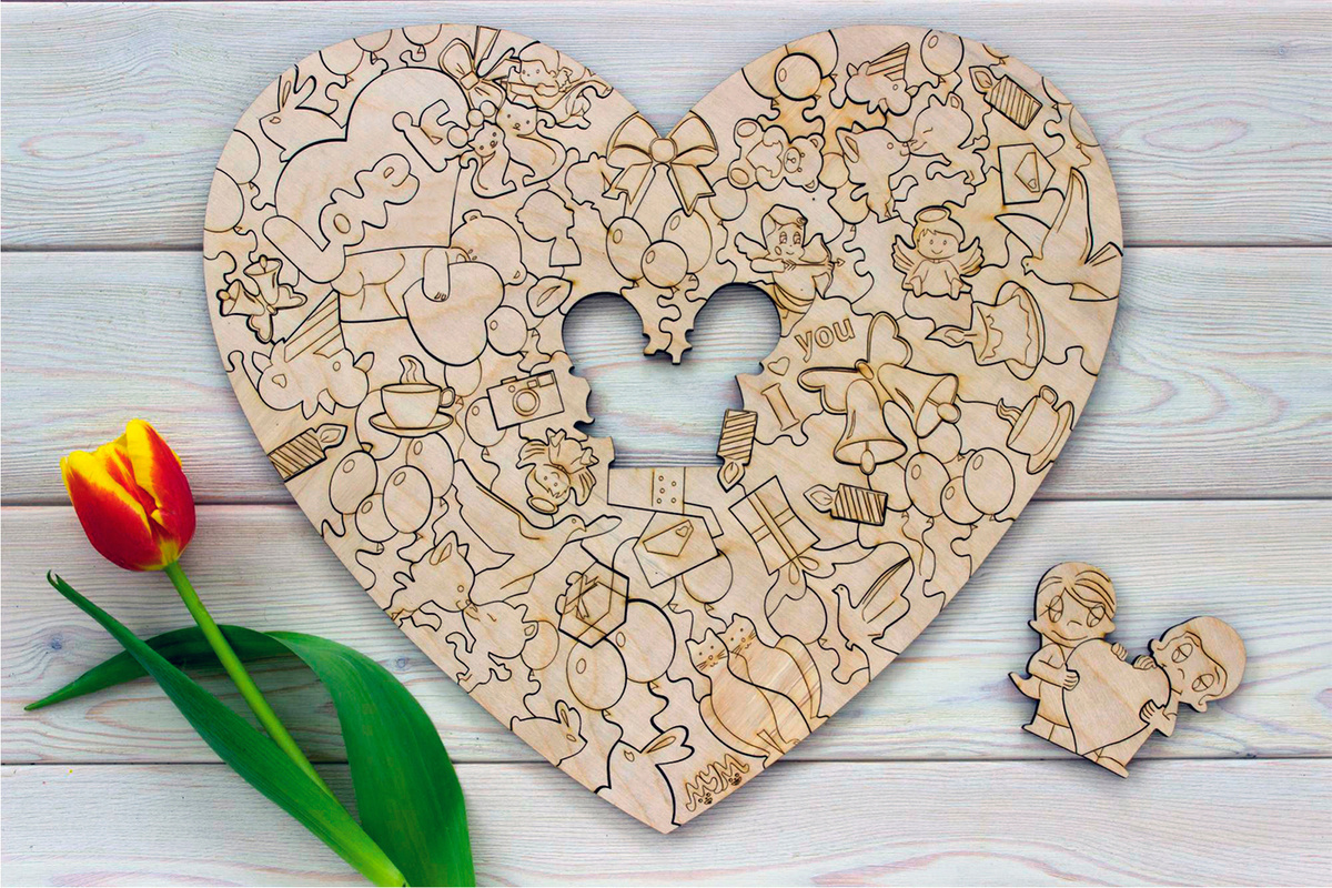 трафарет сердце пазл из новой коллекции - скачать бесплатно или отправить другу .