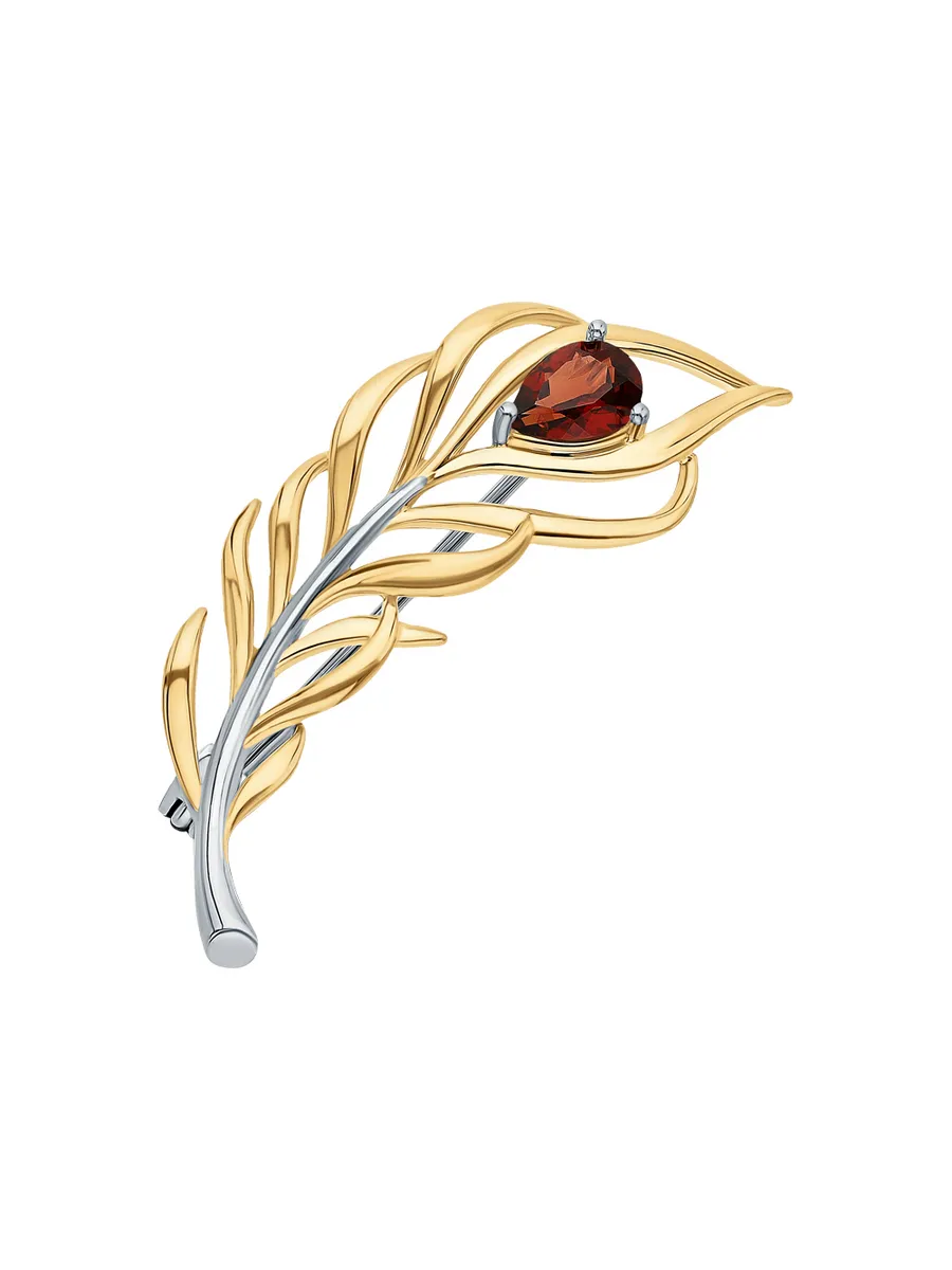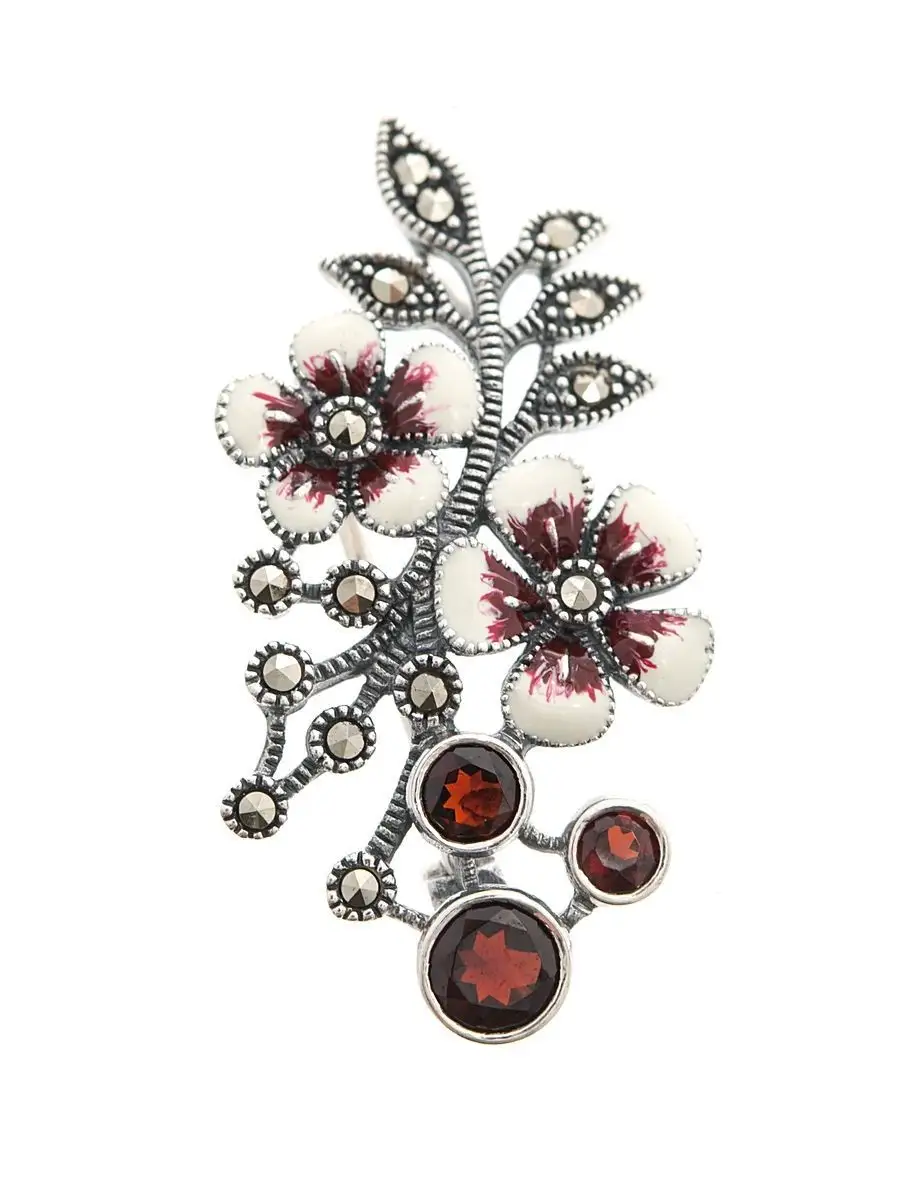 Серебряная брошь с гранатом