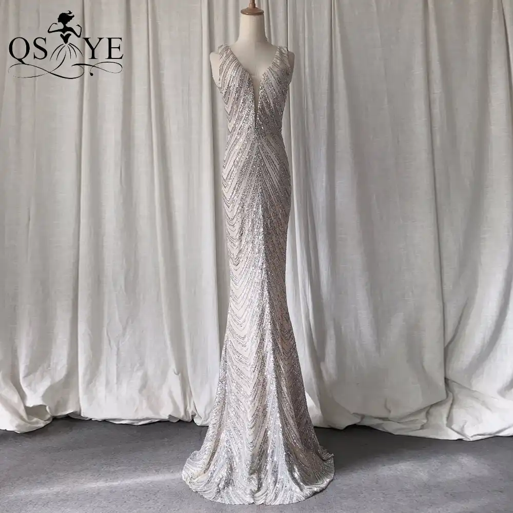 Длинное серебристое платье (119 фото)