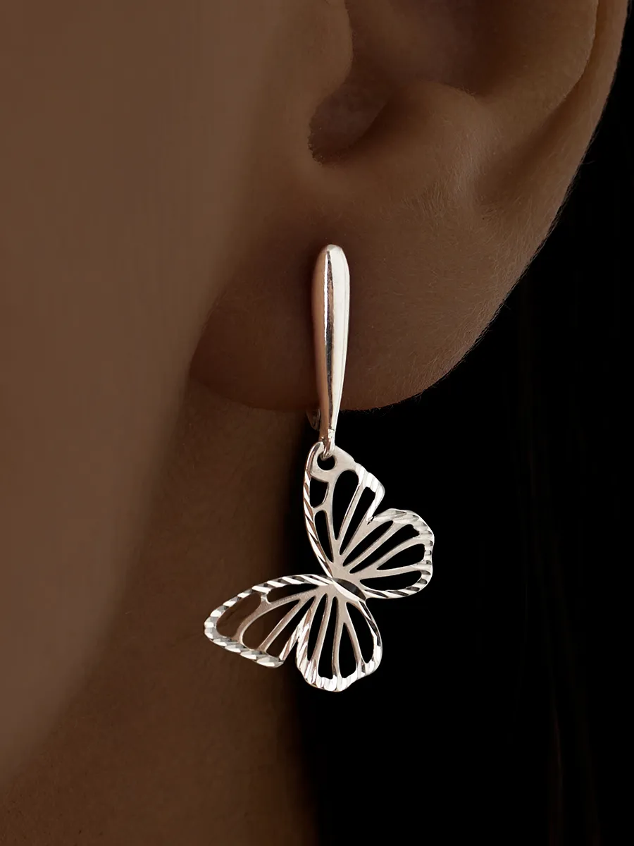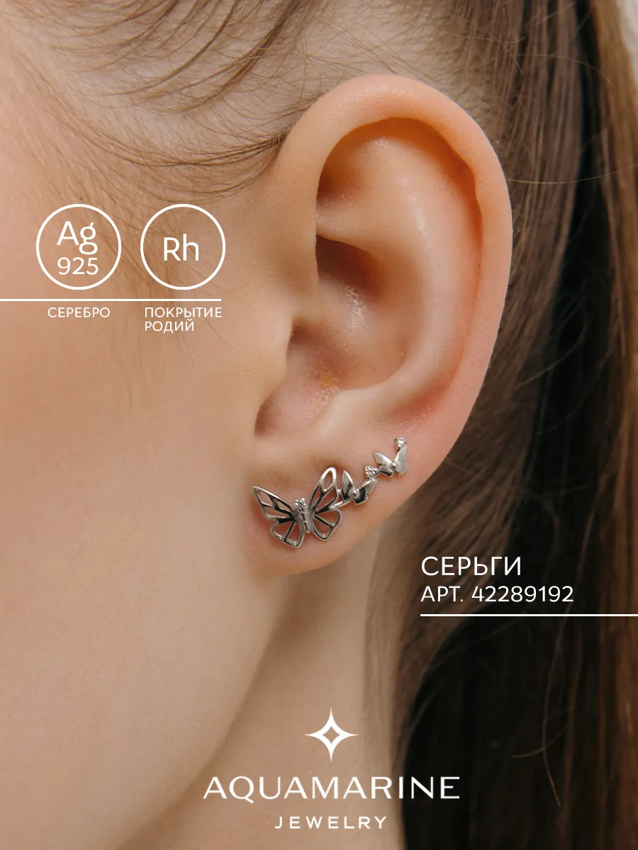 Сережки бабочки серебро 131 фото
