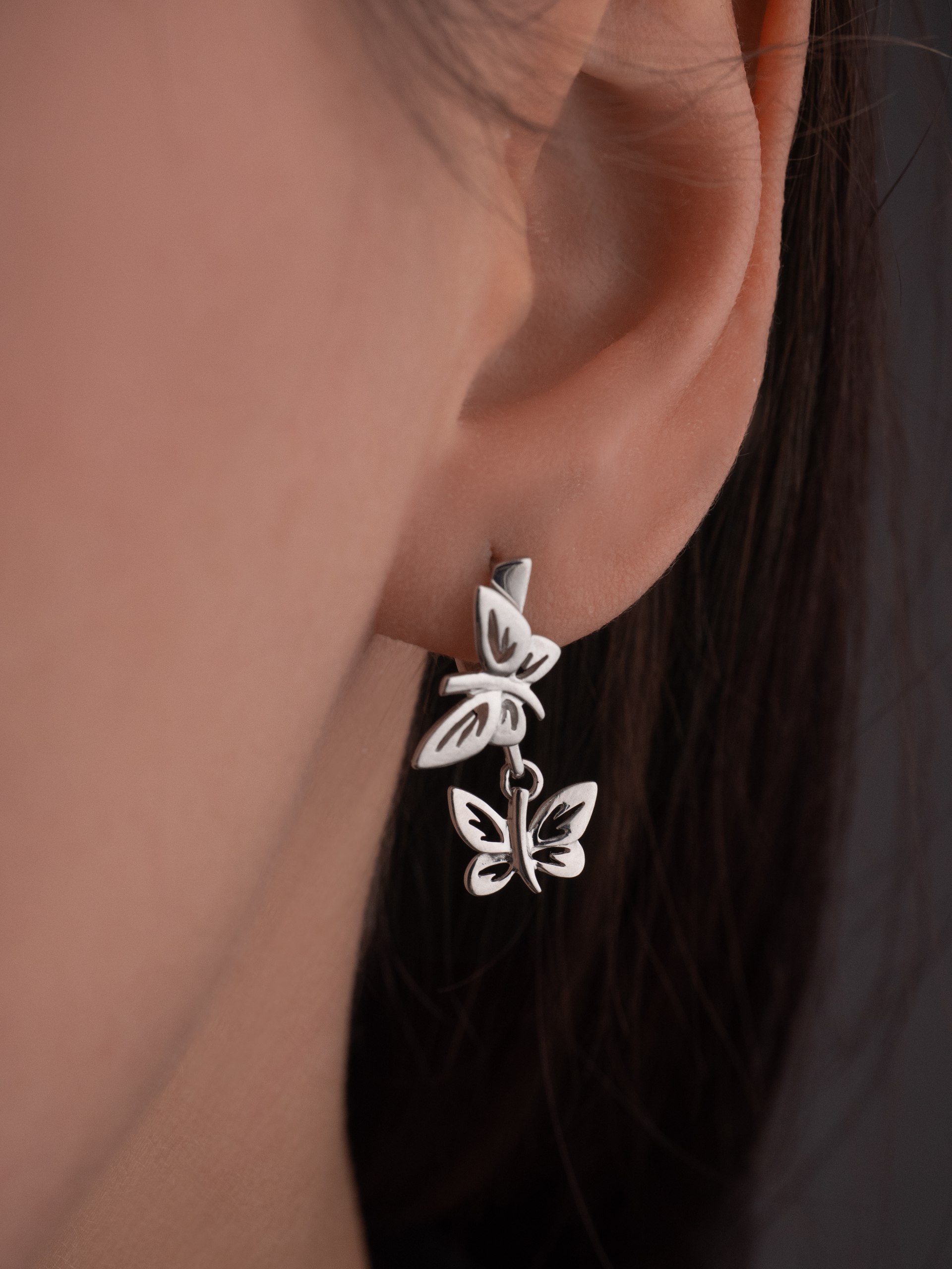 Сережки бабочки серебро