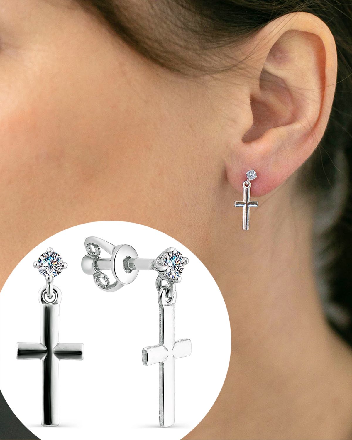 Серьга крестик гвоздик 139 фото