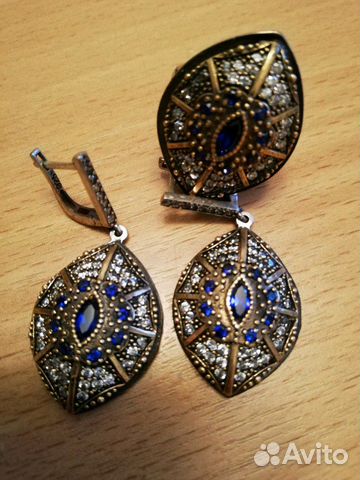 Серебряные серьги с натуральными драгоценными и . . .