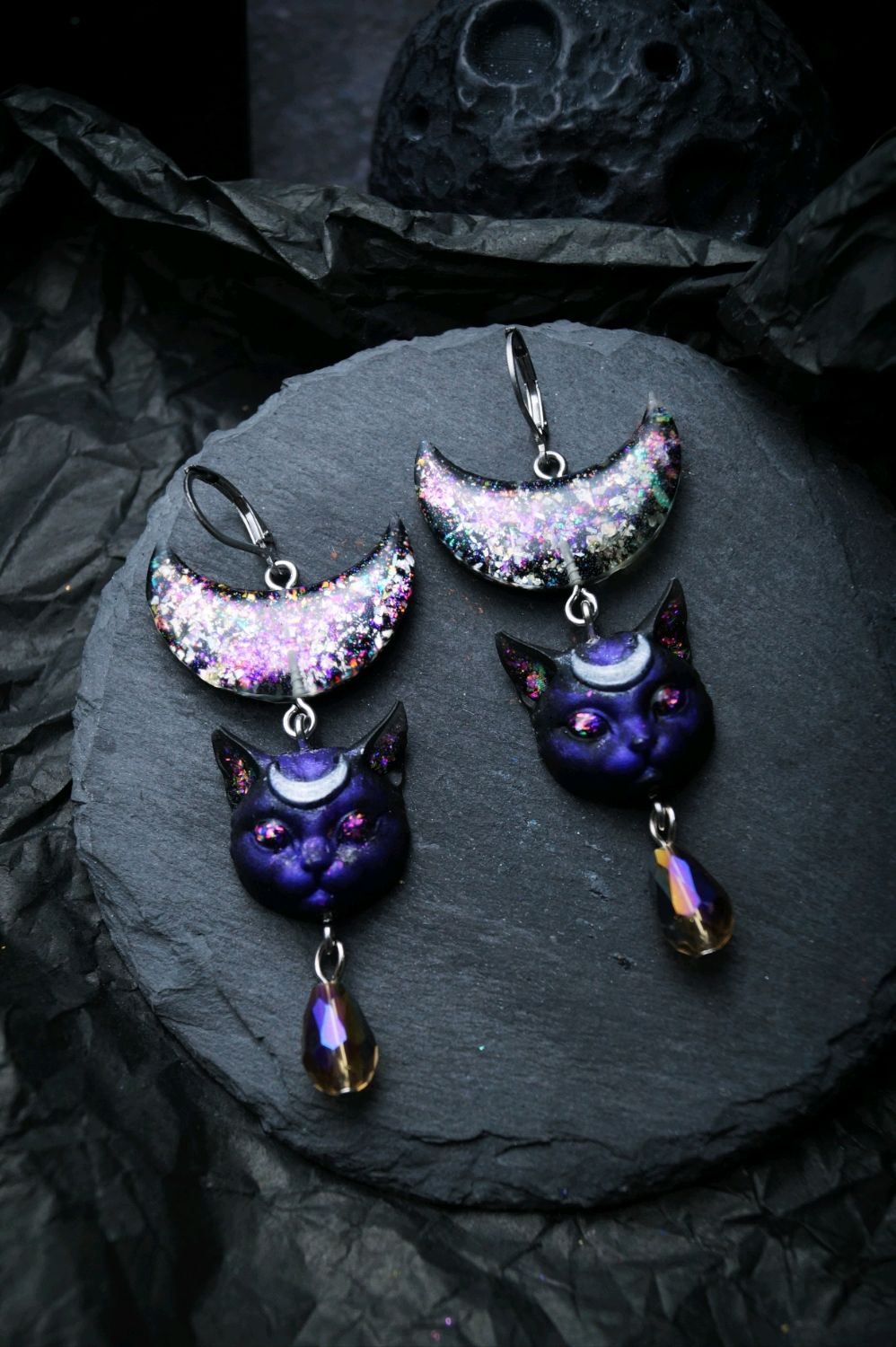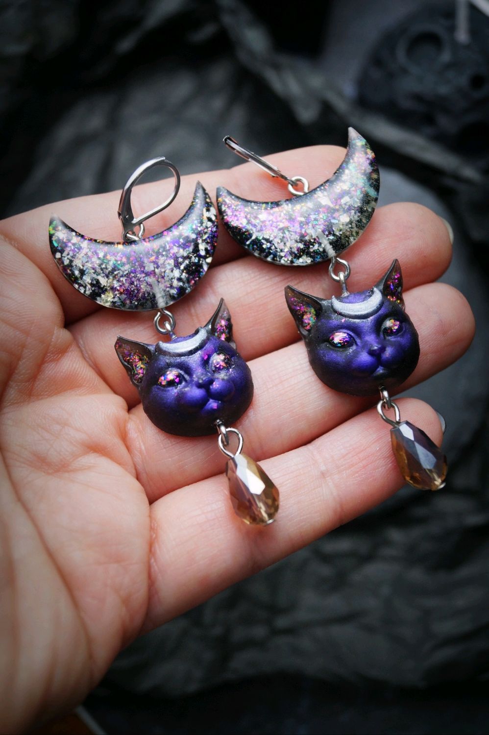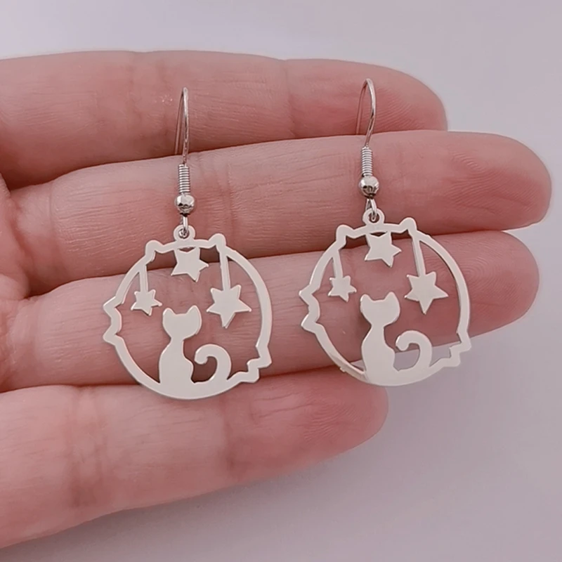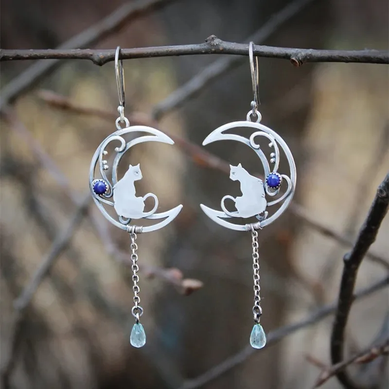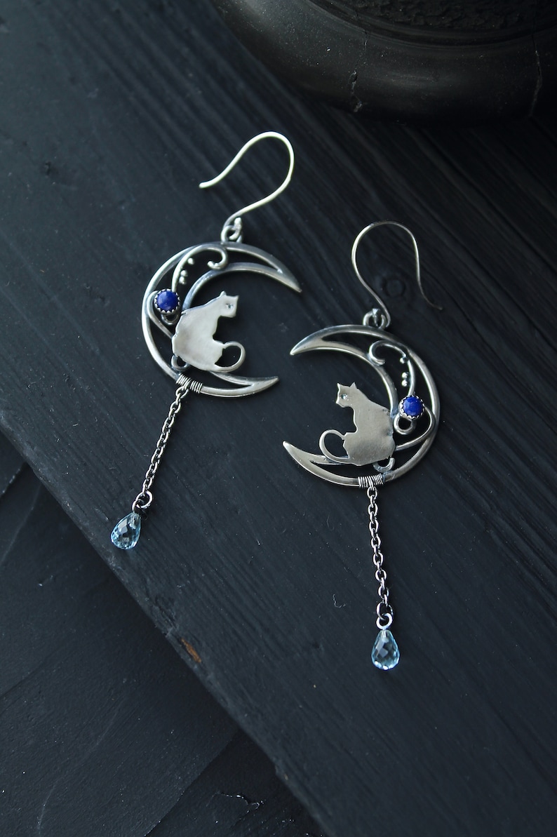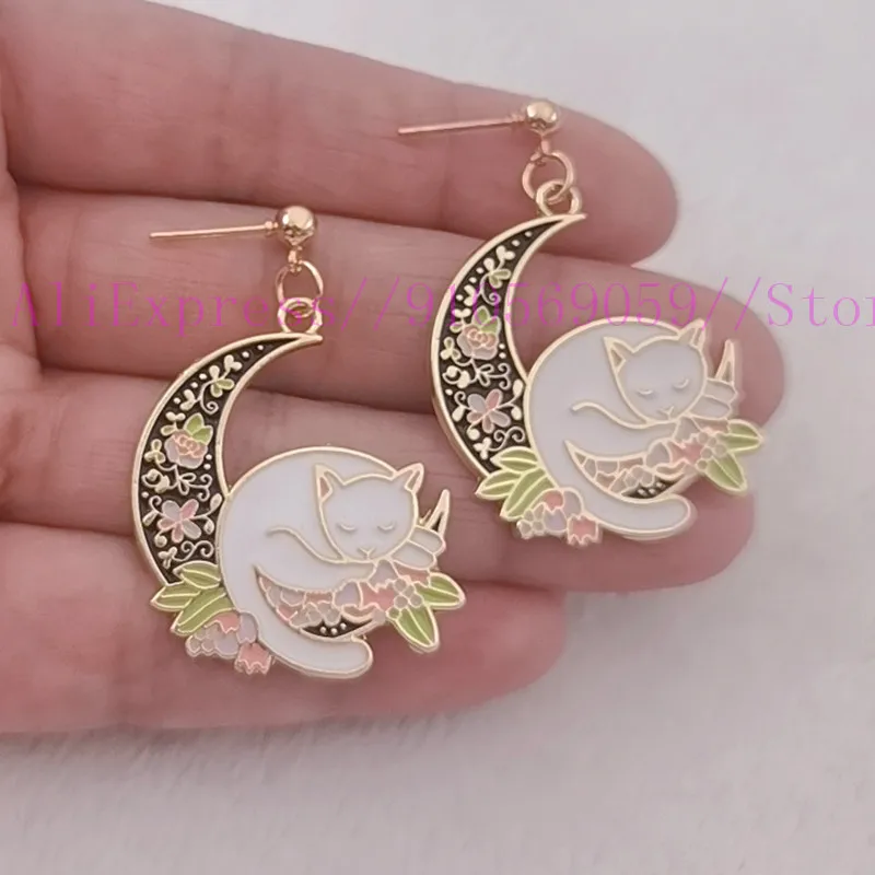 Серьги лунные кошки с английским