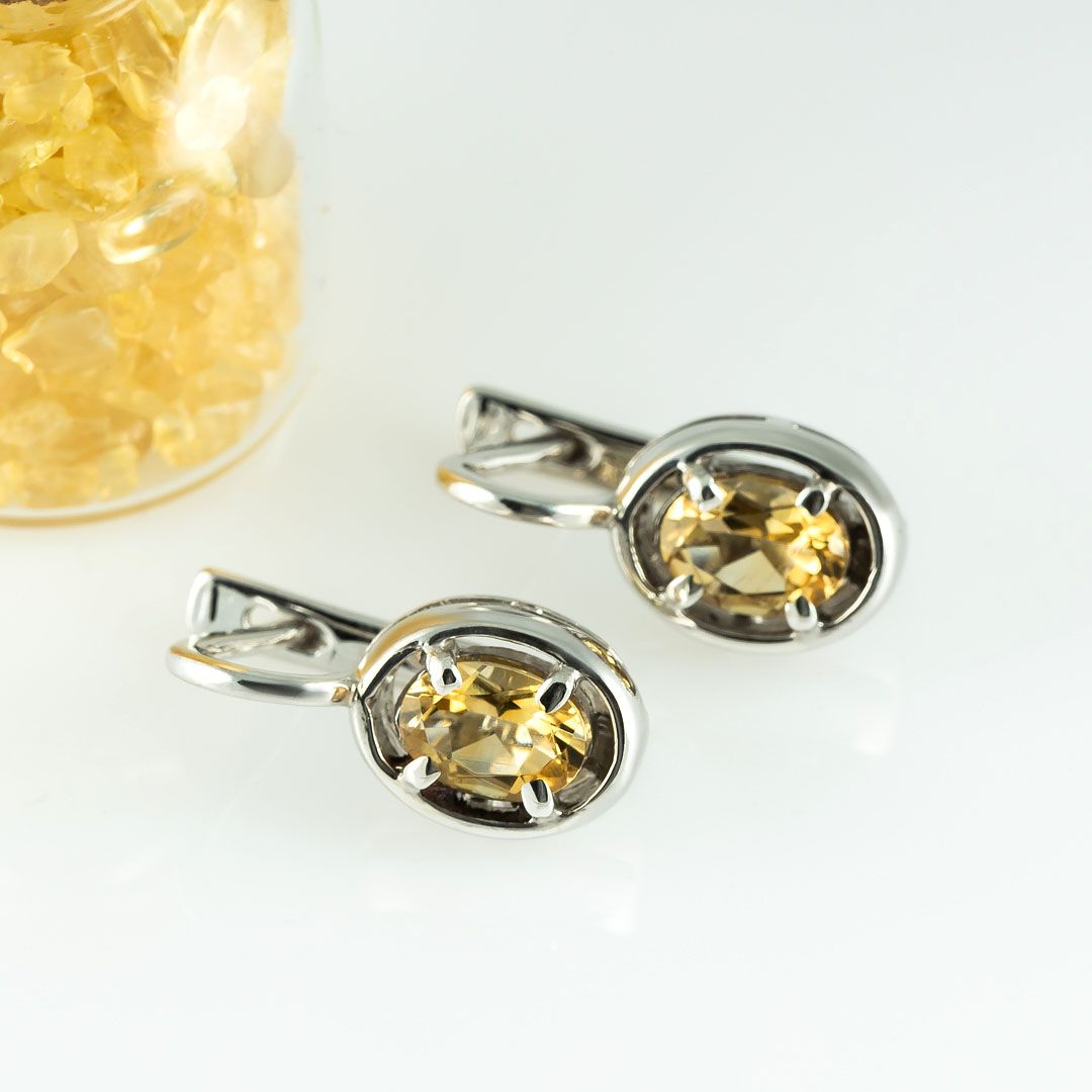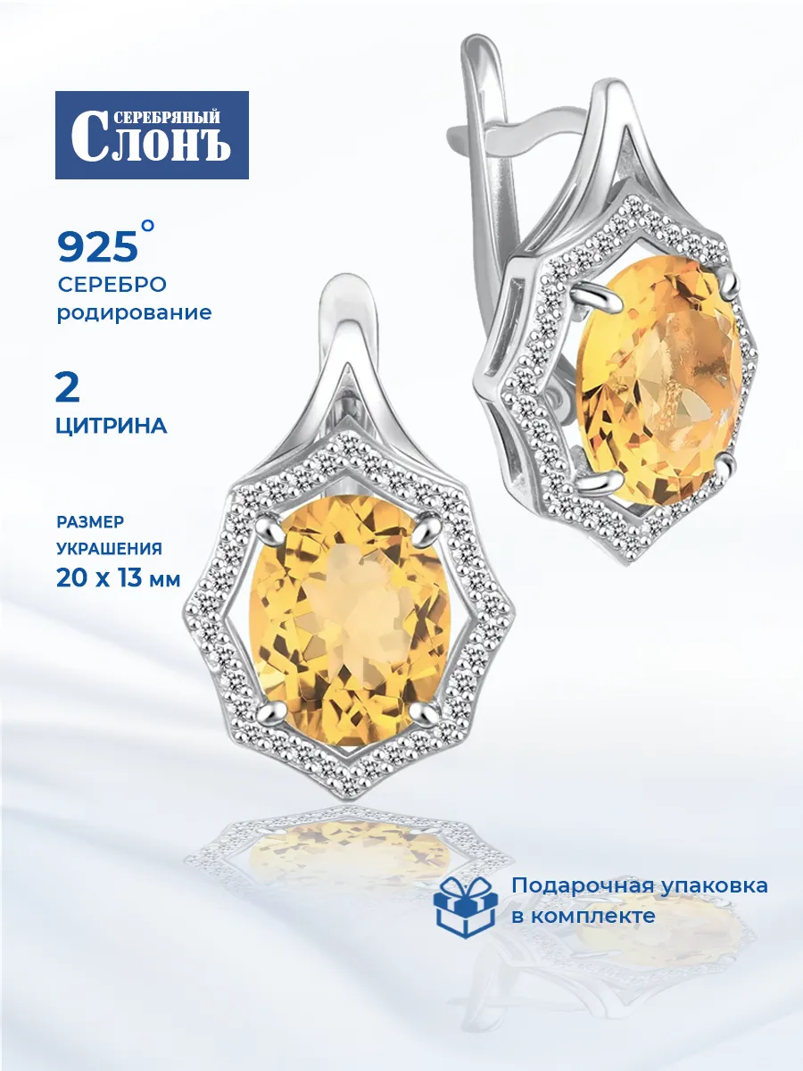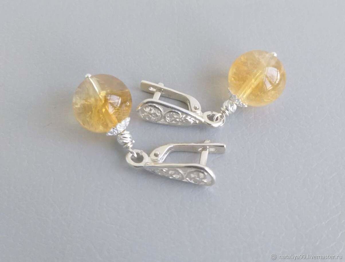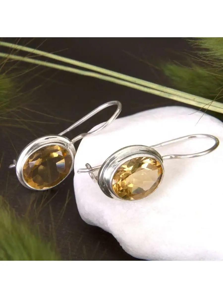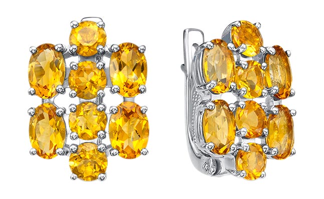 Серьги с цитрином в серебре 130 фото