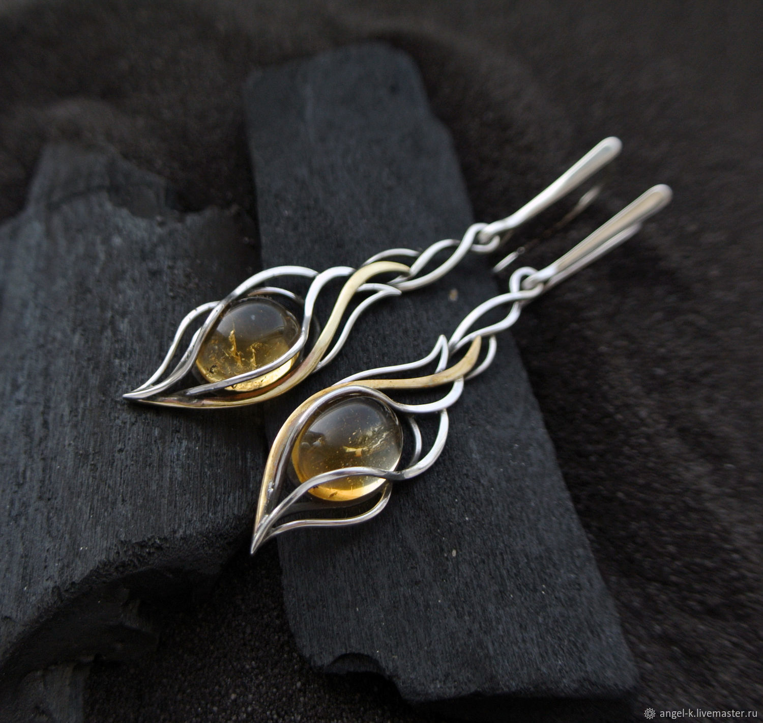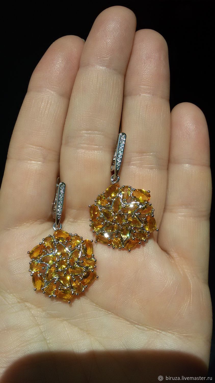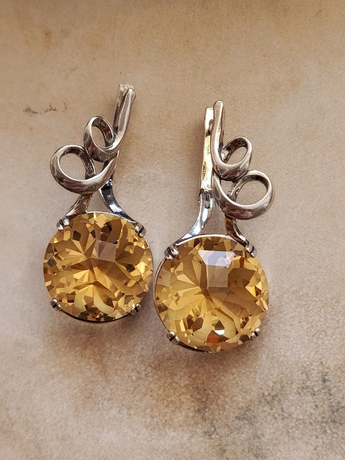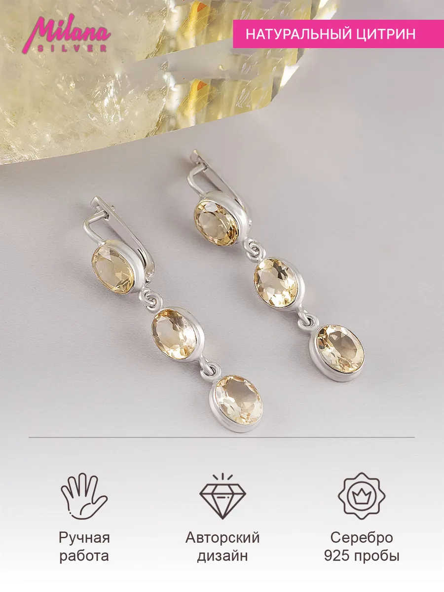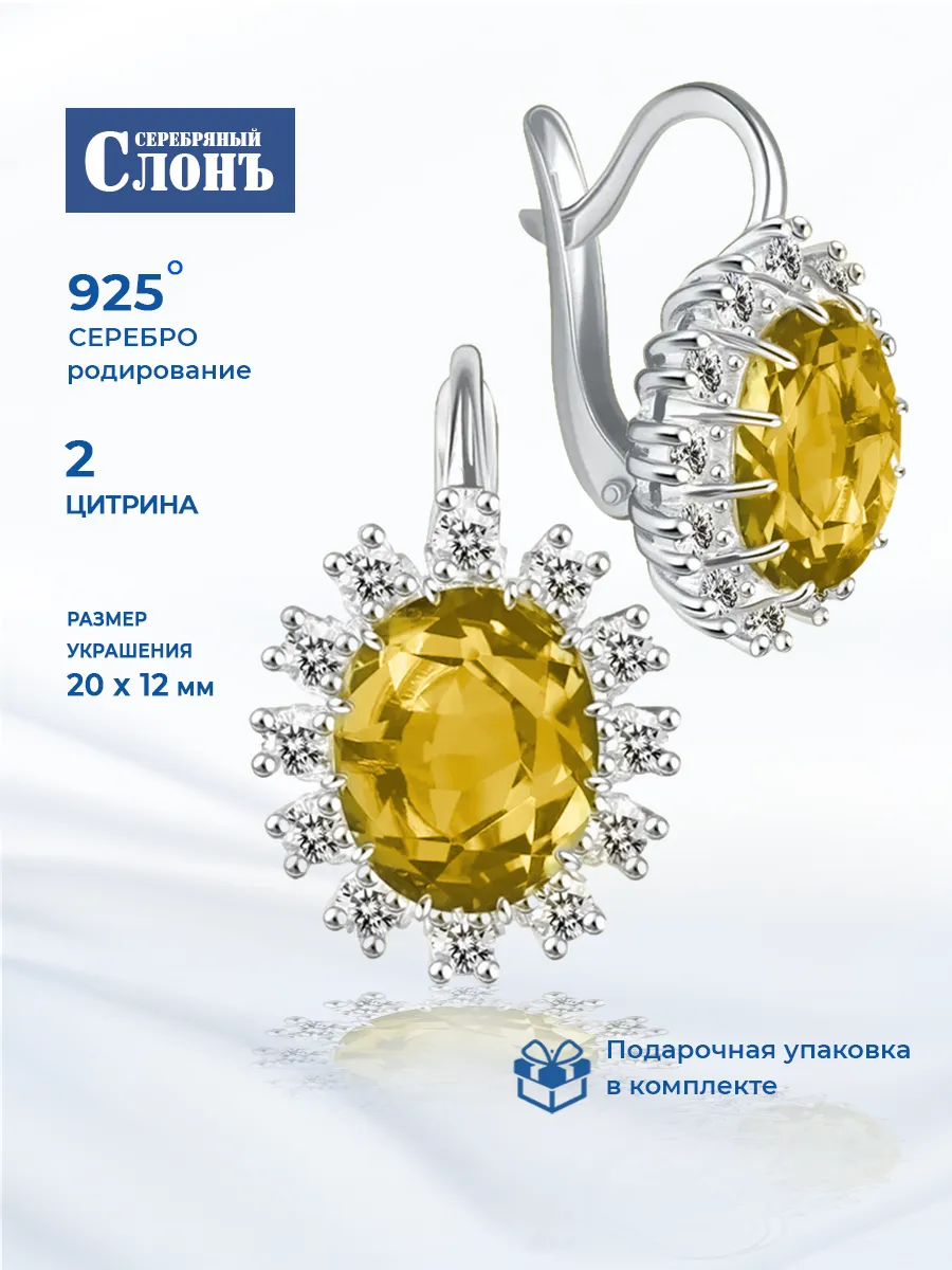 Серьги с цитрином в серебре 130 фото