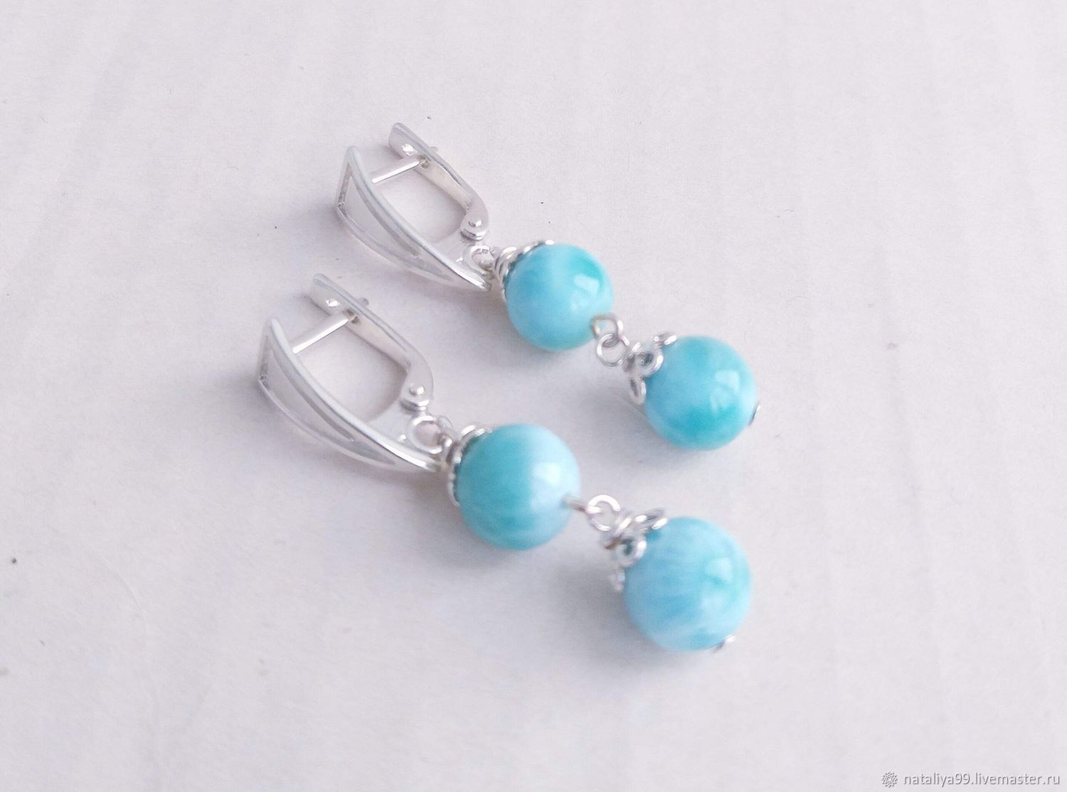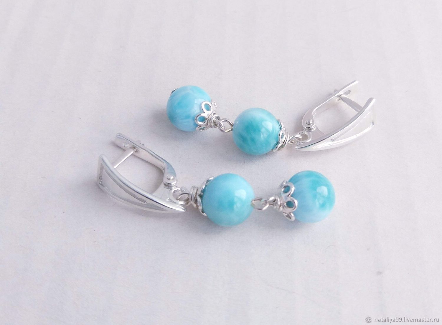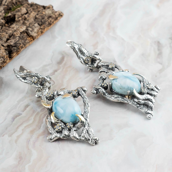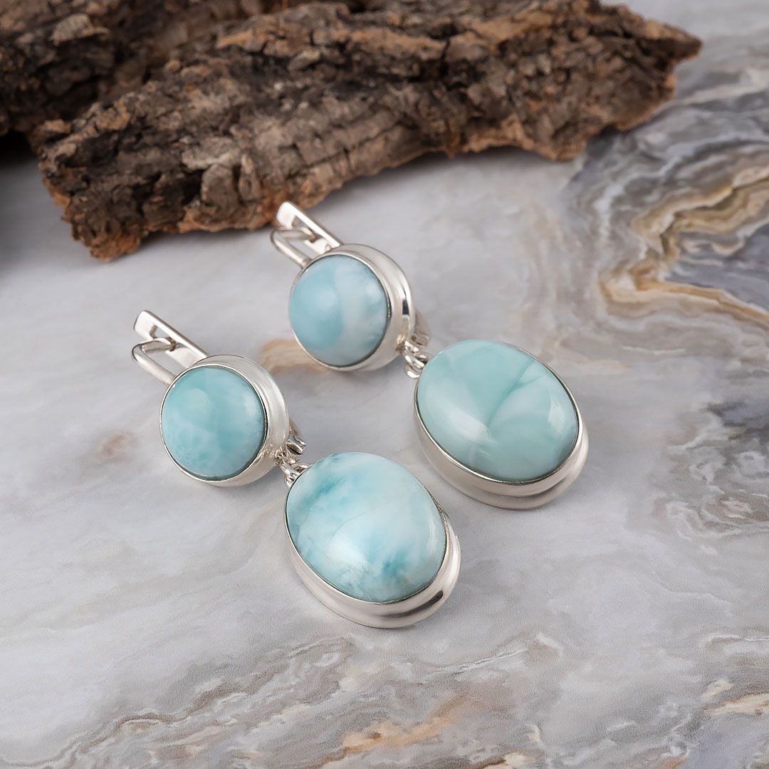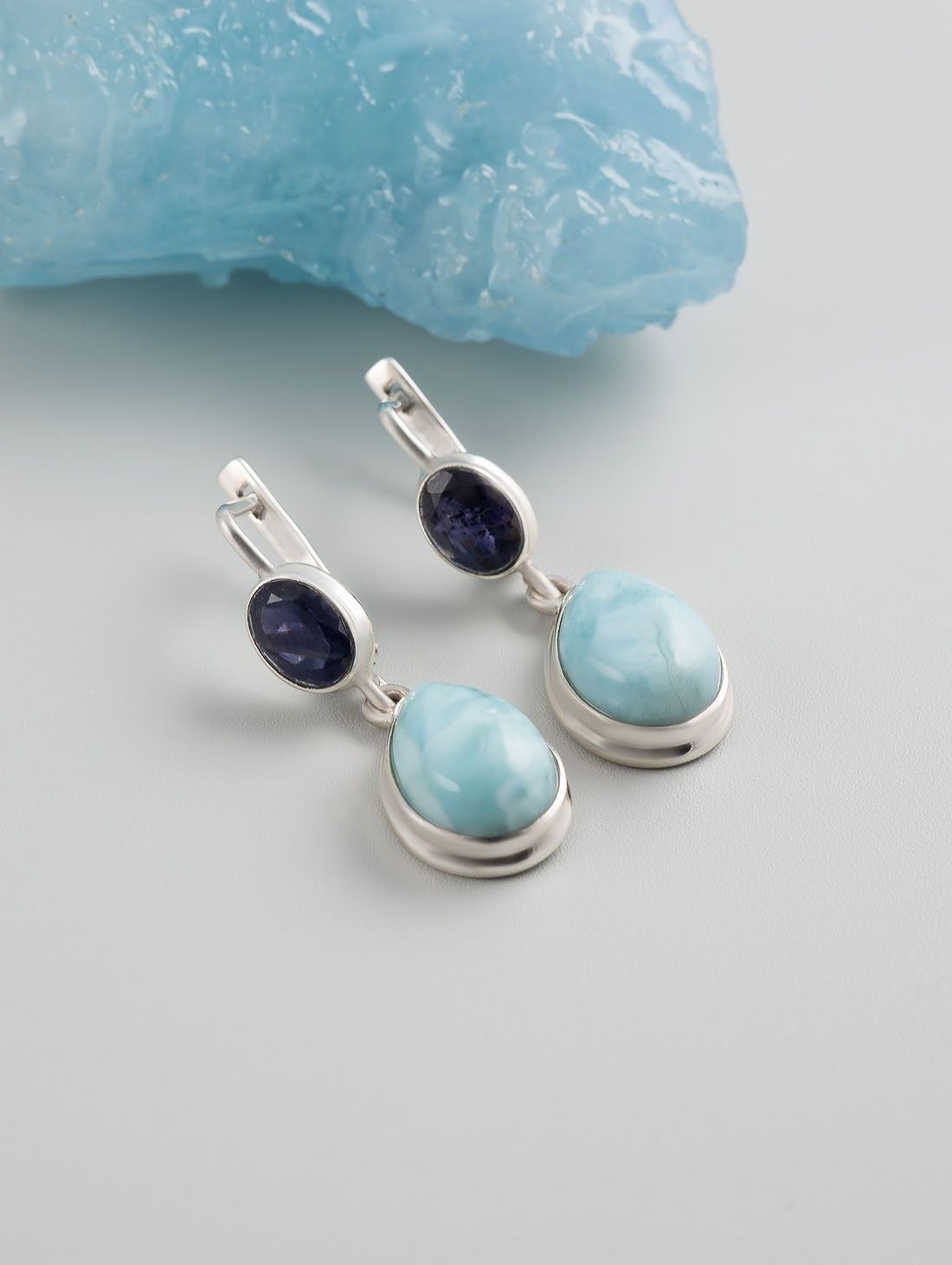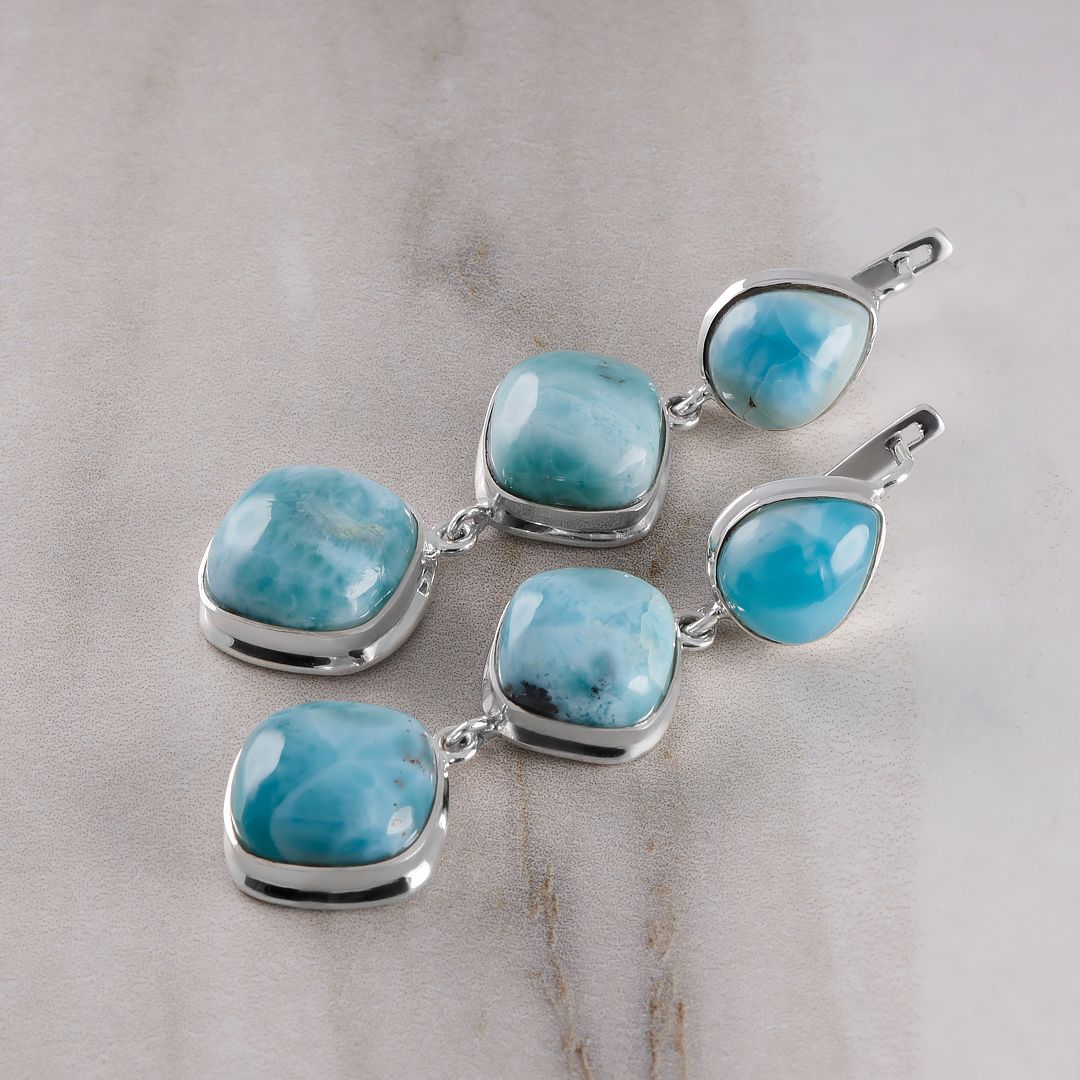 Серьги с ларимаром в серебре 123 фотографий